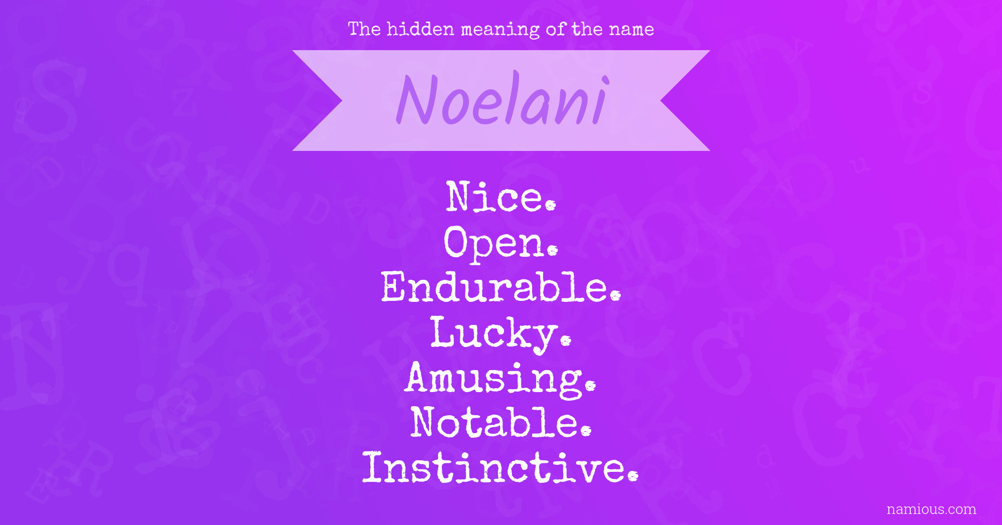 "Noelani is a nice, open, endurable, lucky, amusing, notable and instinctive person."