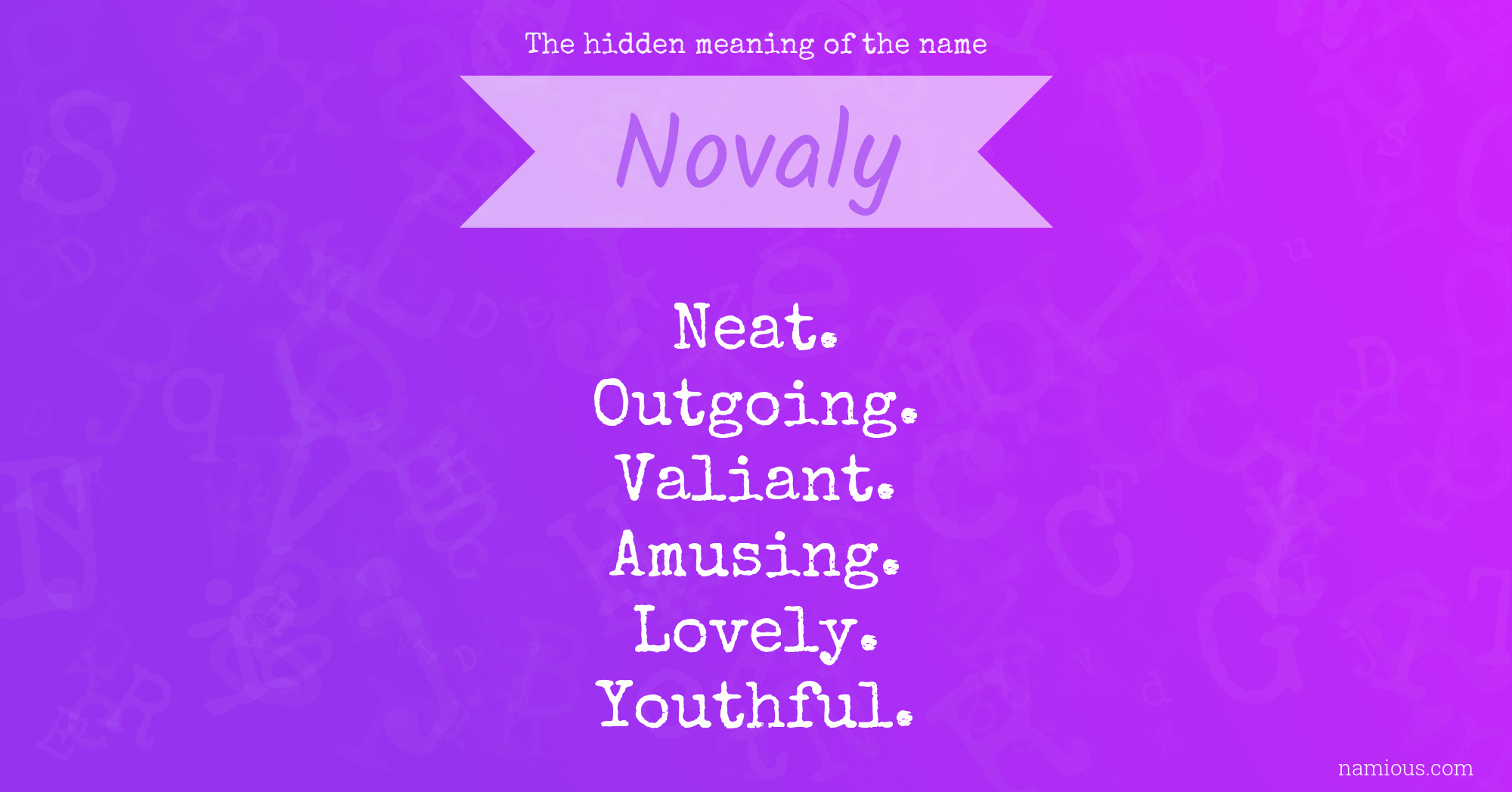 "Novaly is a neat, outgoing, valiant, amusing, lovely and youthful person."