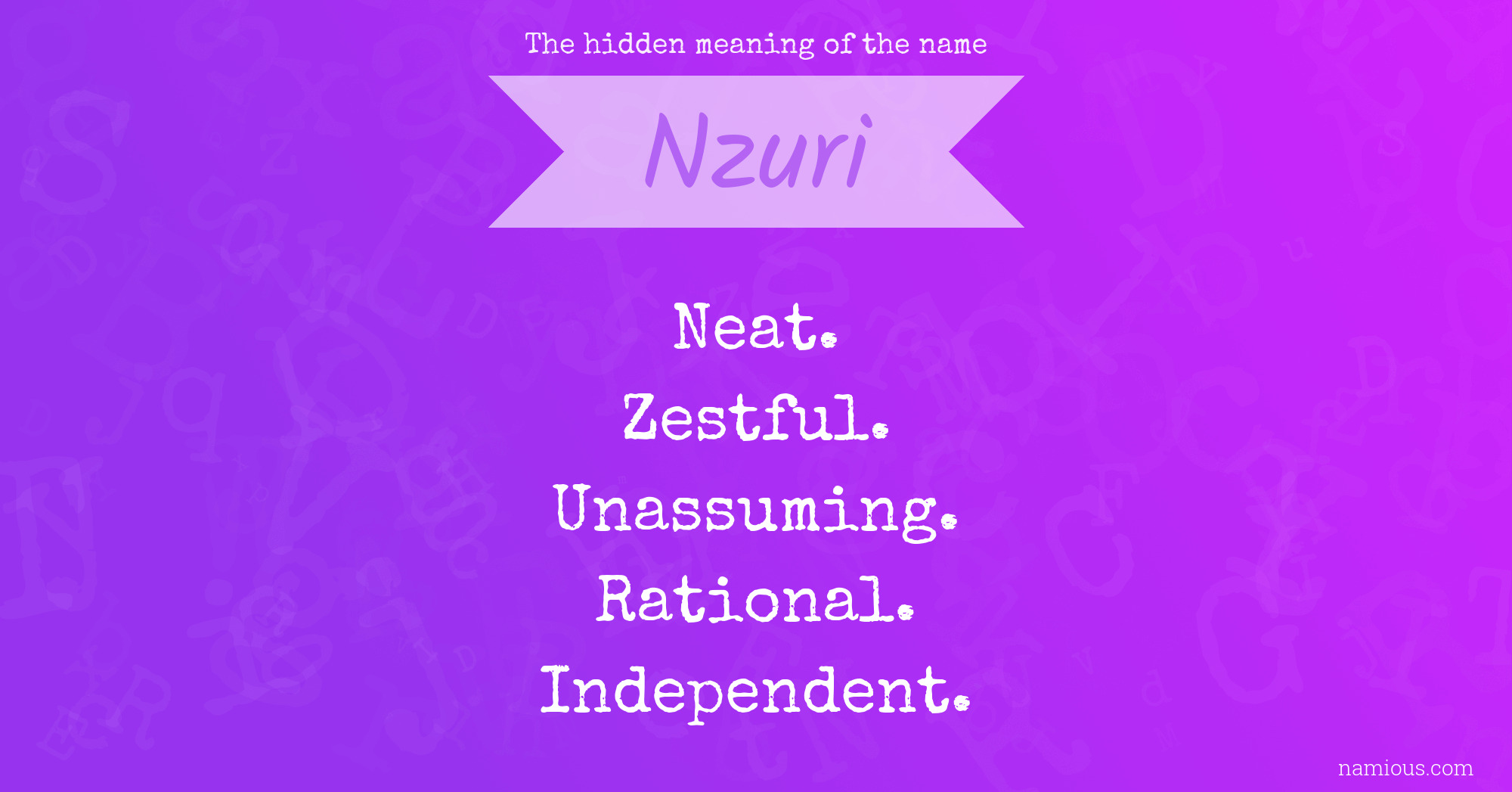 "Nzuri is a neat, zestful, unassuming, rational and independent person."