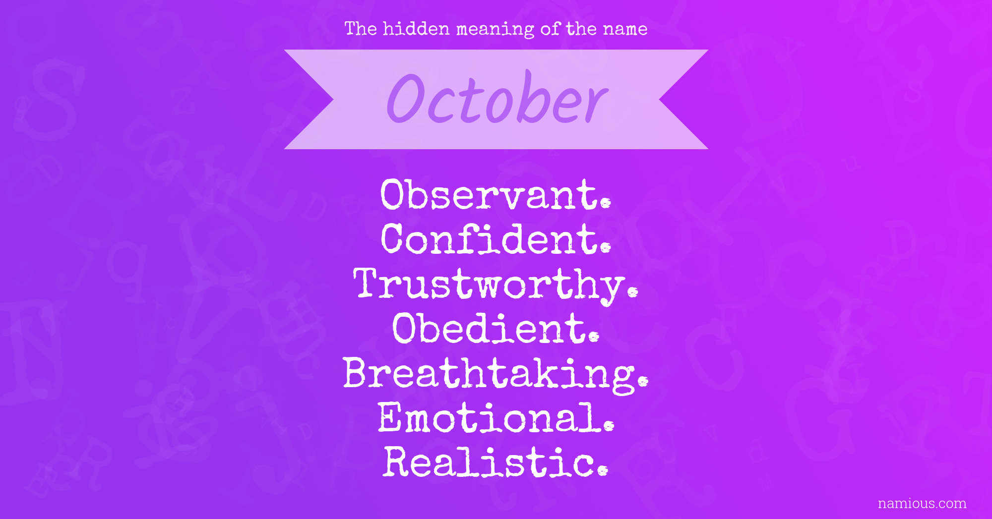 "October is an observant, confident, trustworthy, obedient, breathtaking, emotional and realistic person."