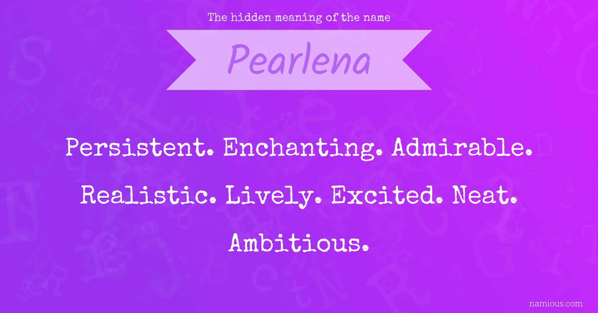 "Pearlena is a persistent, enchanting, admirable, realistic, lively, excited, neat and ambitious person."