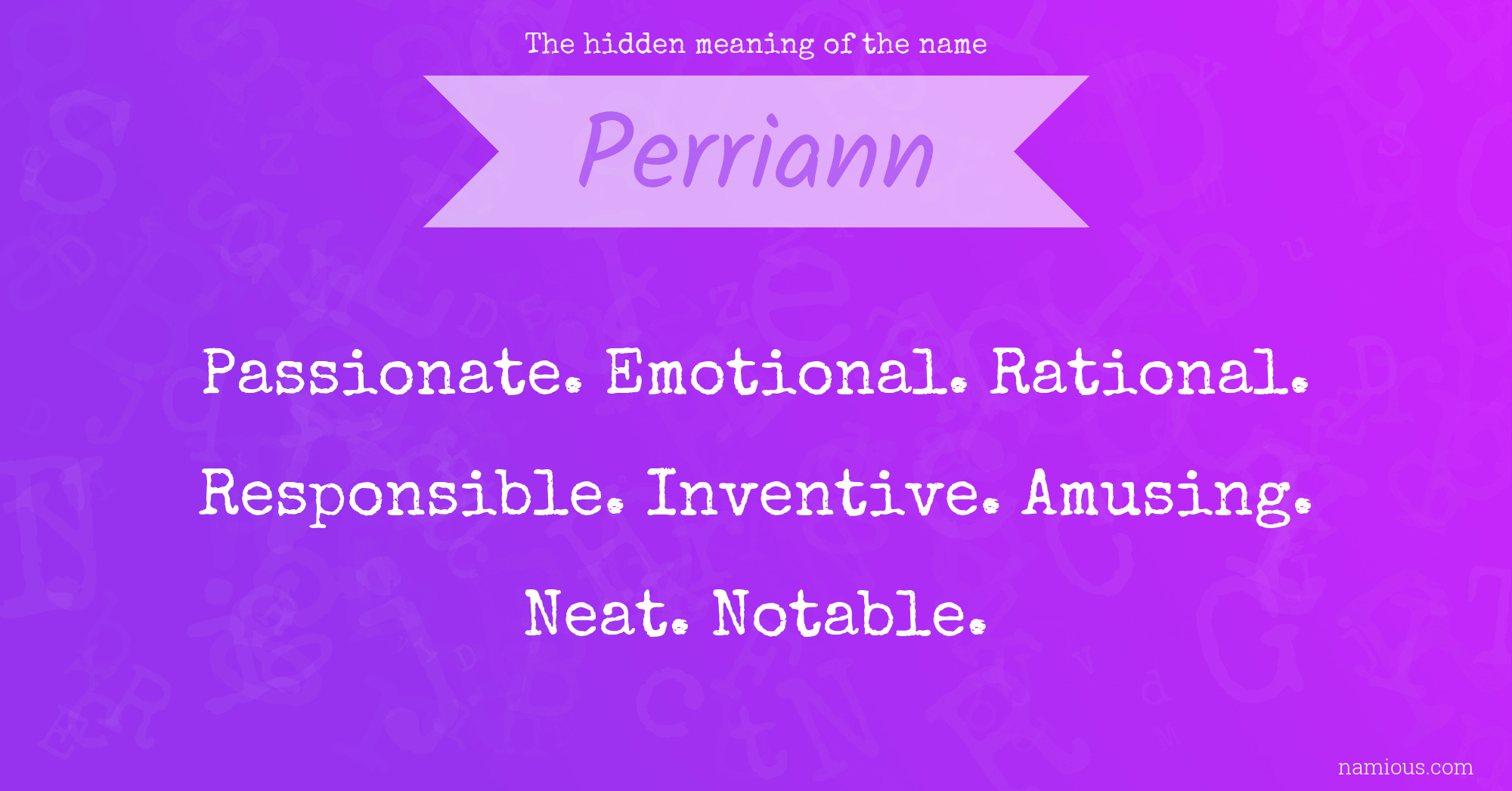 "Perriann is a passionate, emotional, rational, responsible, inventive, amusing, neat and notable person."
