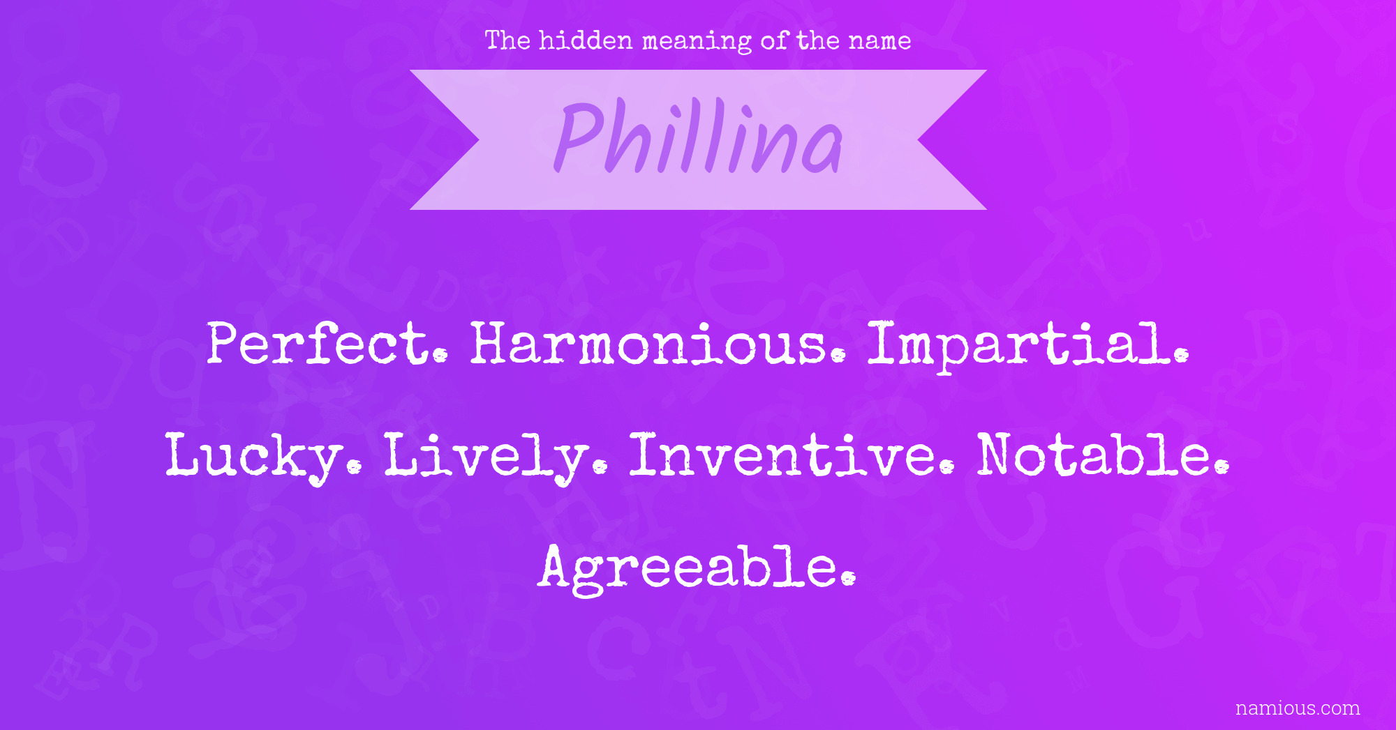 "Phillina is a perfect, harmonious, impartial, lucky, lively, inventive, notable and agreeable person."