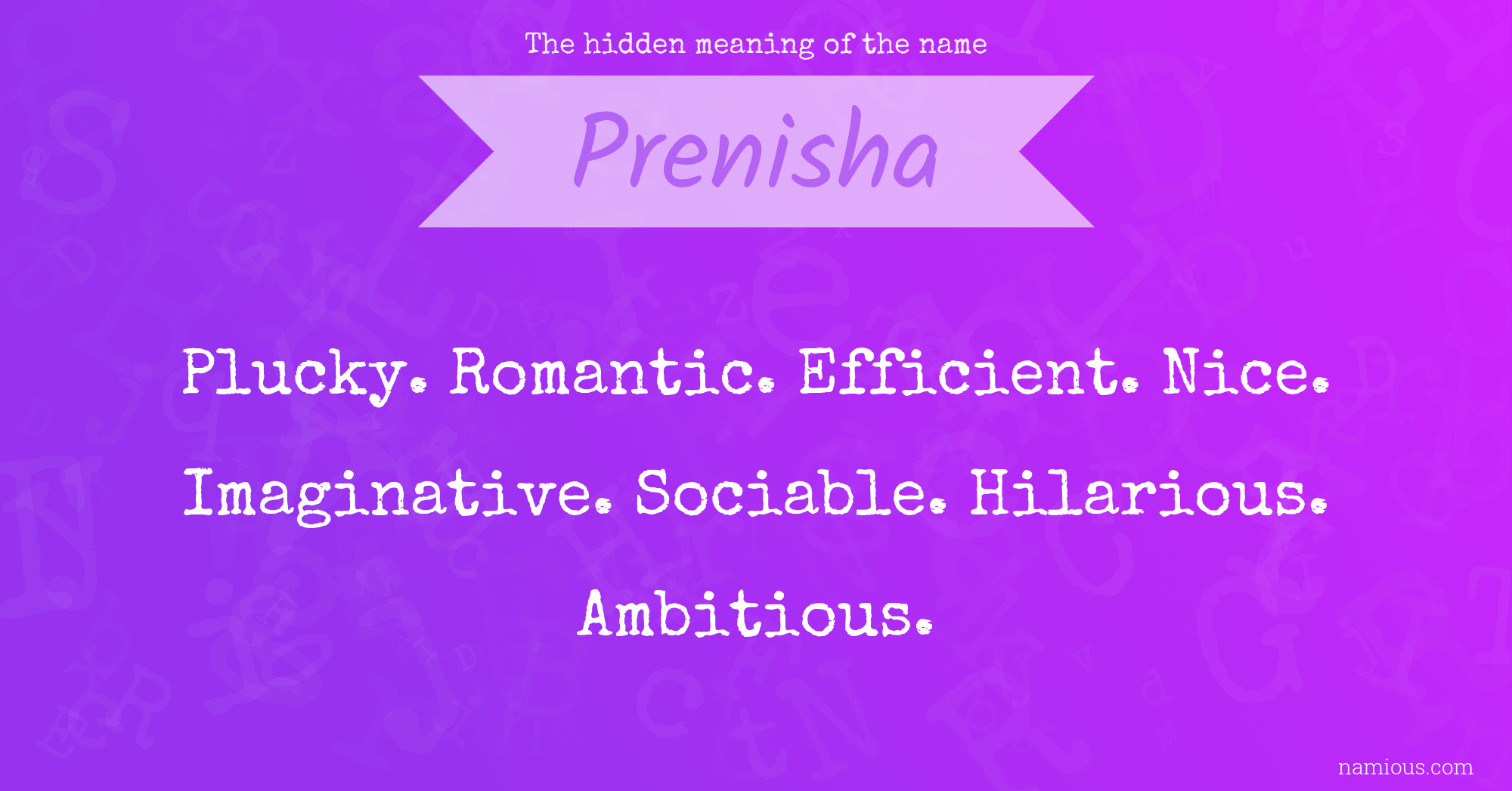 "Prenisha is a plucky, romantic, efficient, nice, imaginative, sociable, hilarious and ambitious person."