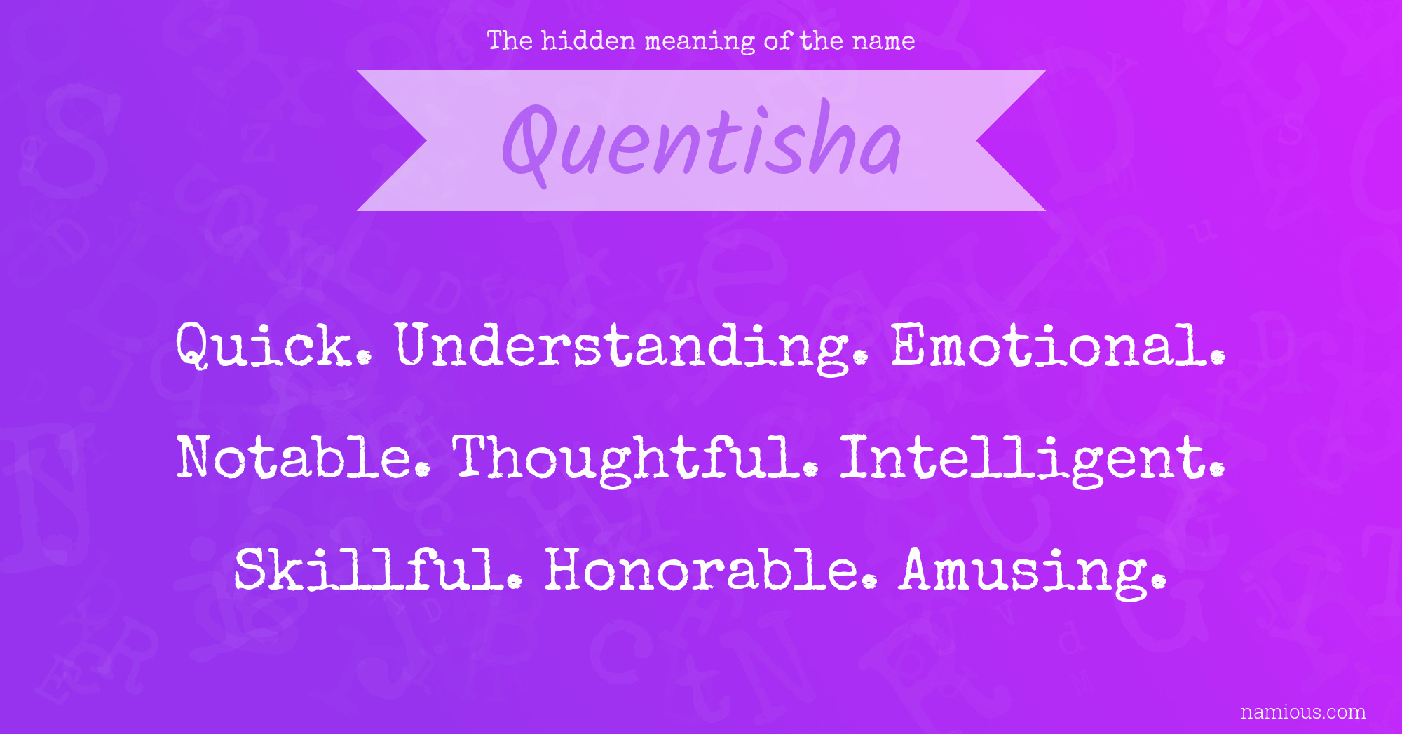 "Quentisha is a quick, understanding, emotional, notable, thoughtful, intelligent, skillful, honorable and amusing person."