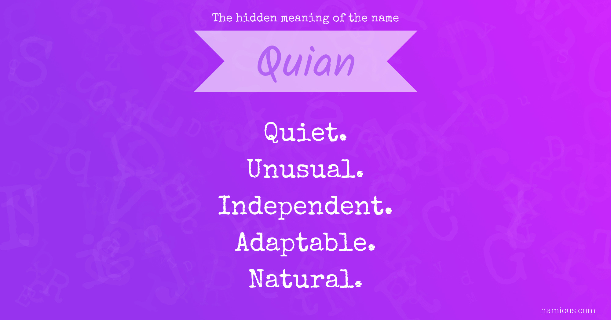 "Quian is a quiet, unusual, independent, adaptable and natural person."
