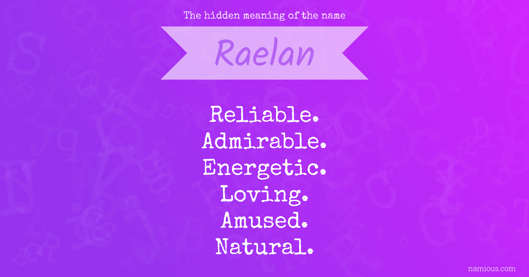 "Raelan is a reliable, admirable, energetic, loving, amused and natural person."