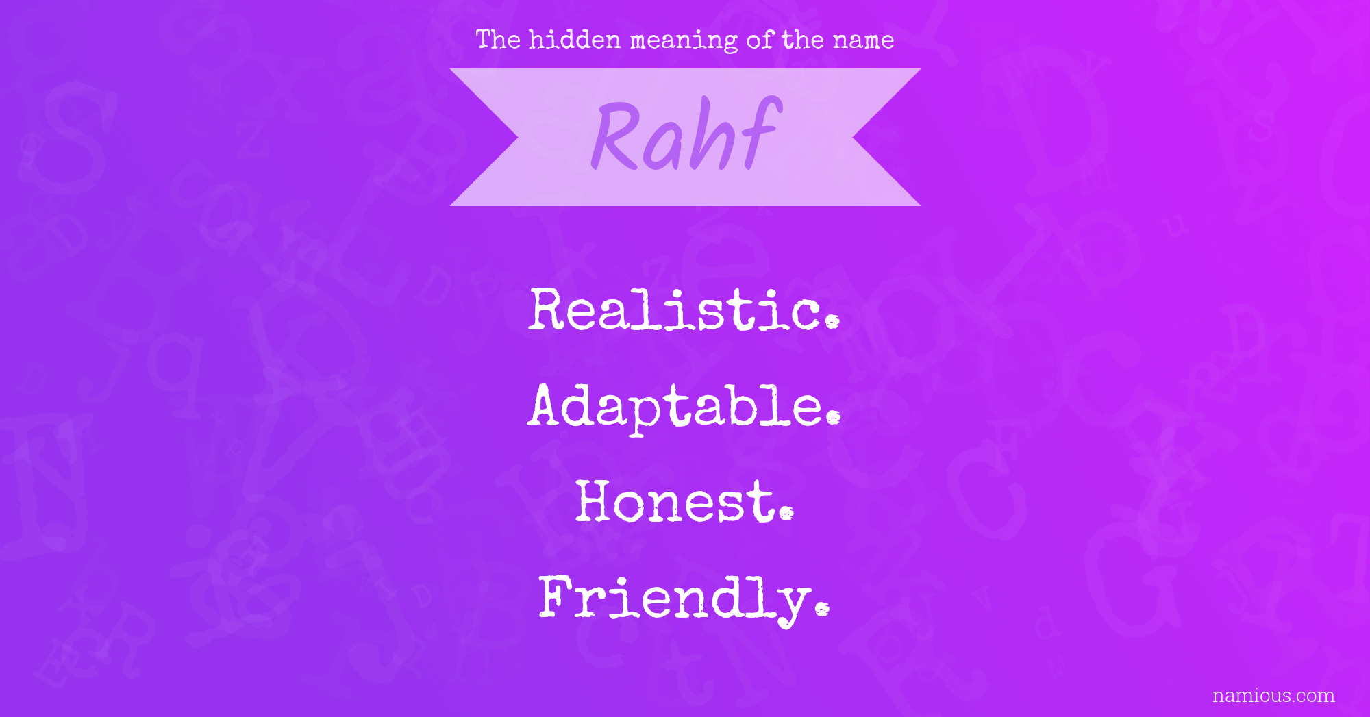"Rahf is a realistic, adaptable, honest and friendly person."