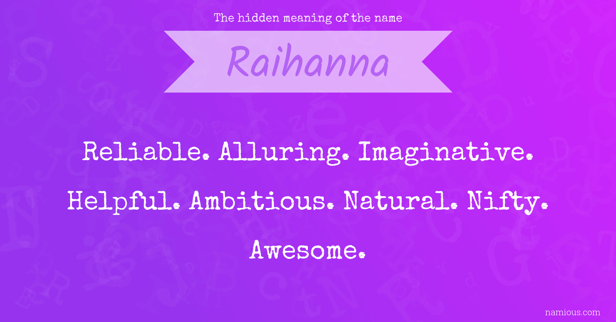 "Raihanna is a reliable, alluring, imaginative, helpful, ambitious, natural, nifty and awesome person."