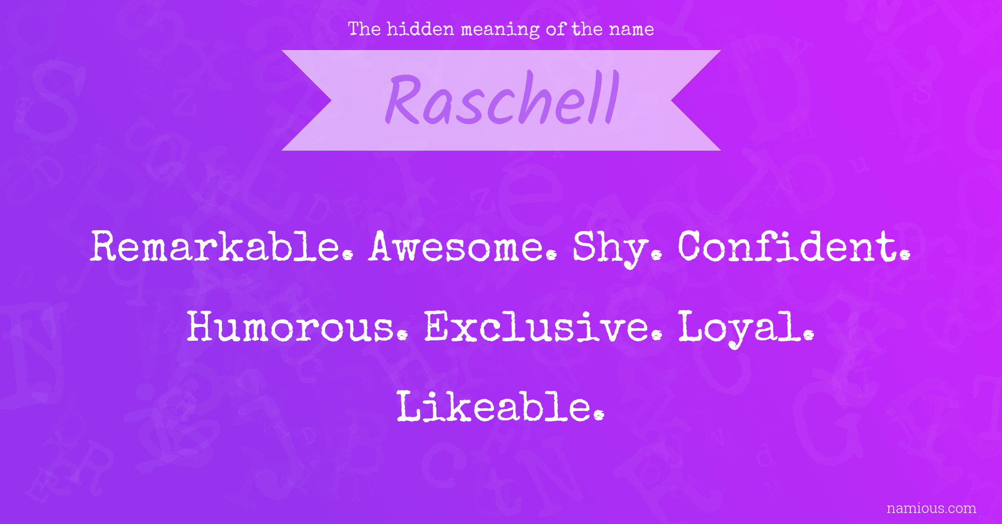 "Raschell is a remarkable, awesome, shy, confident, humorous, exclusive, loyal and likeable person."
