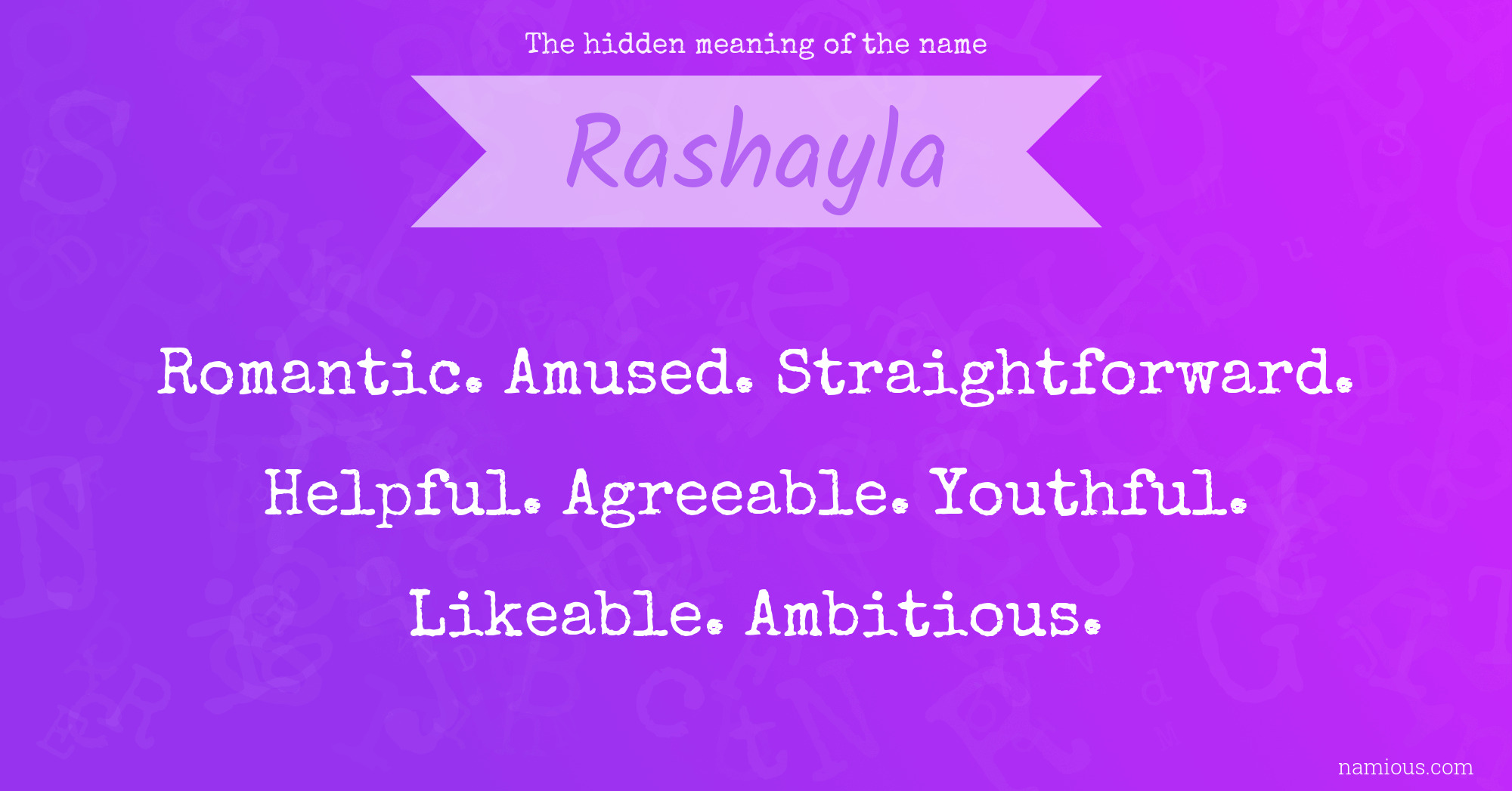 "Rashayla is a romantic, amused, straightforward, helpful, agreeable, youthful, likeable and ambitious person."