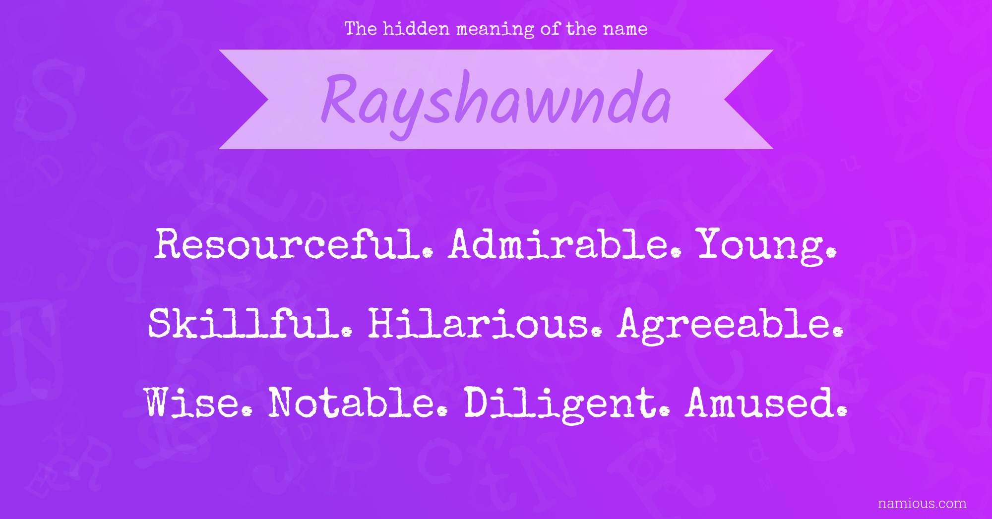 "Rayshawnda is a resourceful, admirable, young, skillful, hilarious, agreeable, wise, notable, diligent and amused person."
