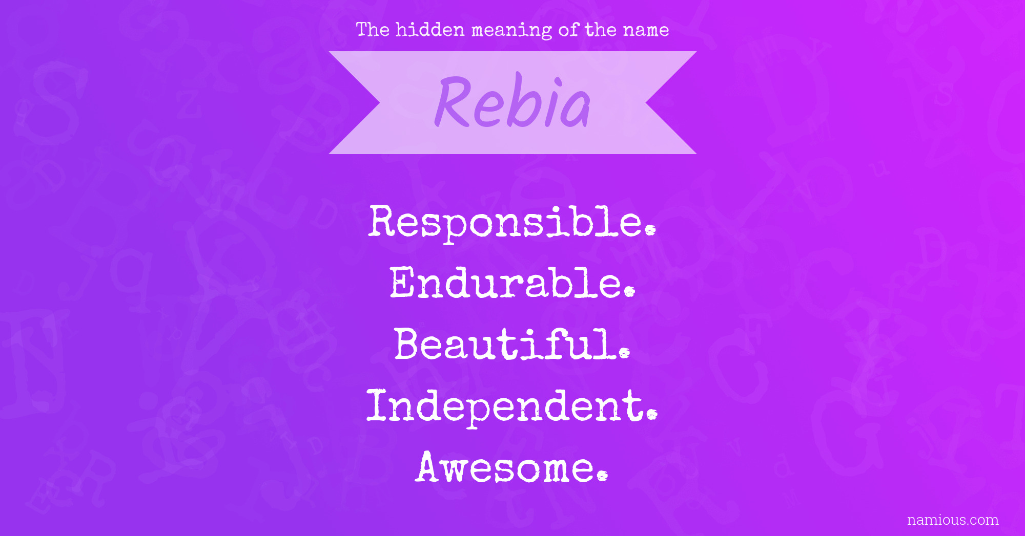 "Rebia is a responsible, endurable, beautiful, independent and awesome person."