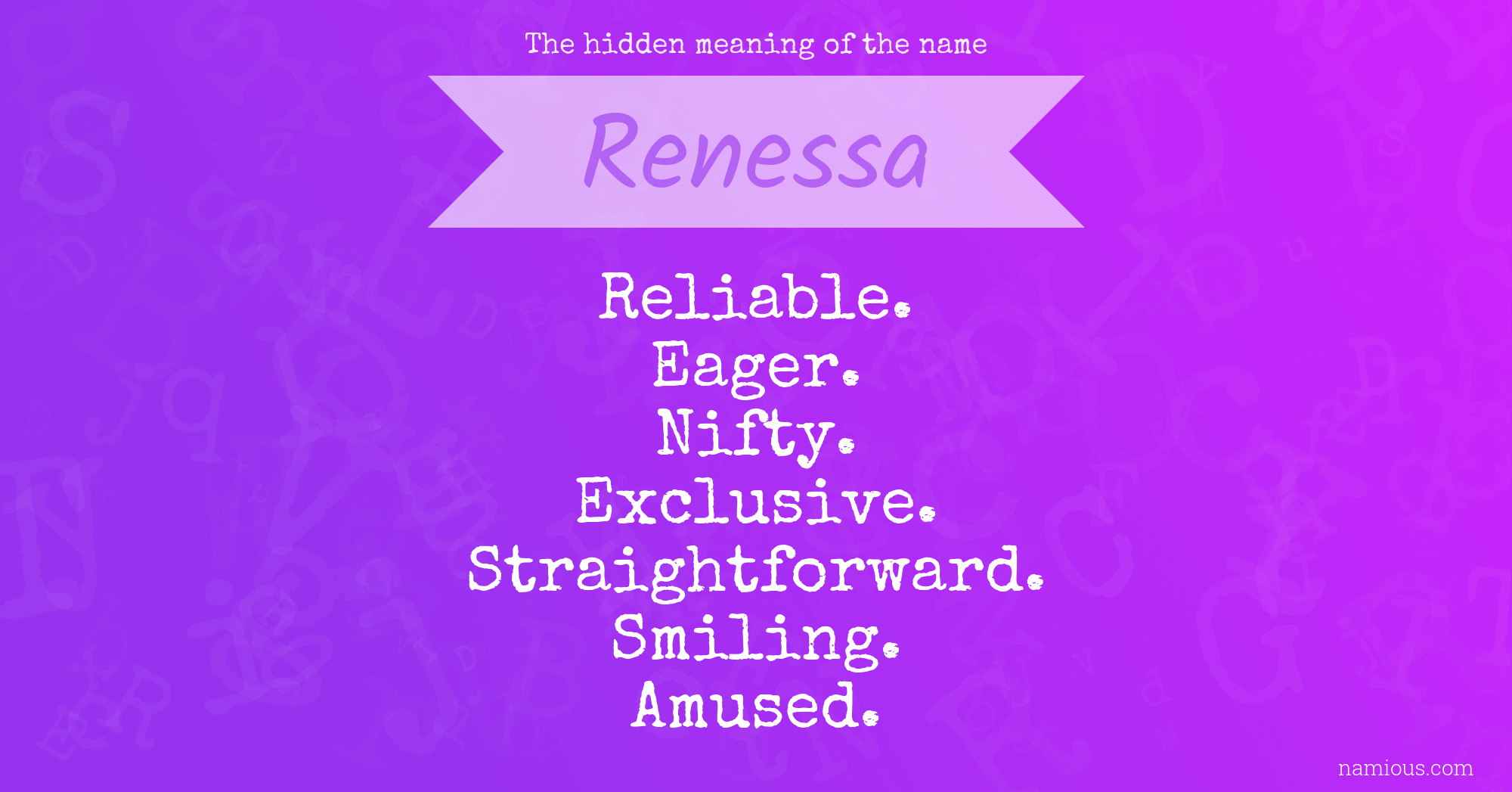 "Renessa is a reliable, eager, nifty, exclusive, straightforward, smiling and amused person."