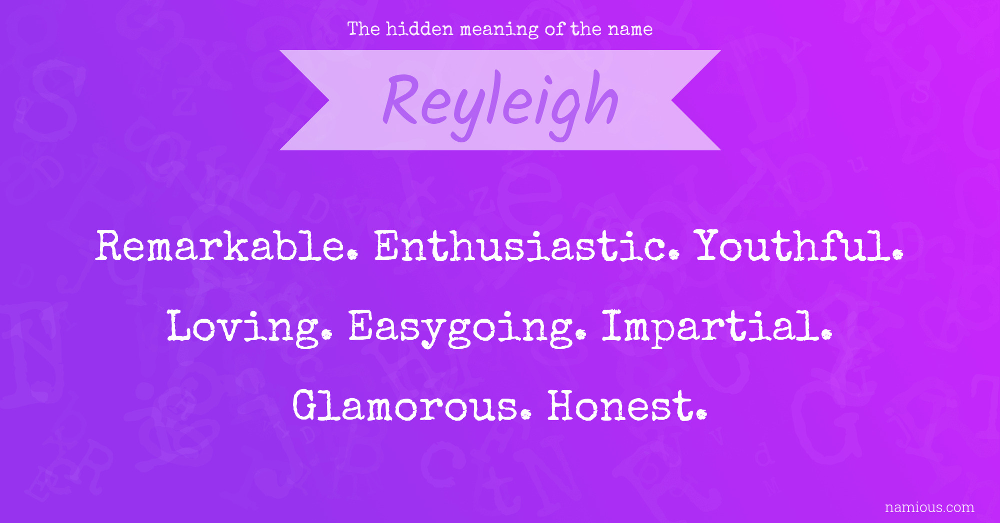 "Reyleigh is a remarkable, enthusiastic, youthful, loving, easygoing, impartial, glamorous and honest person."