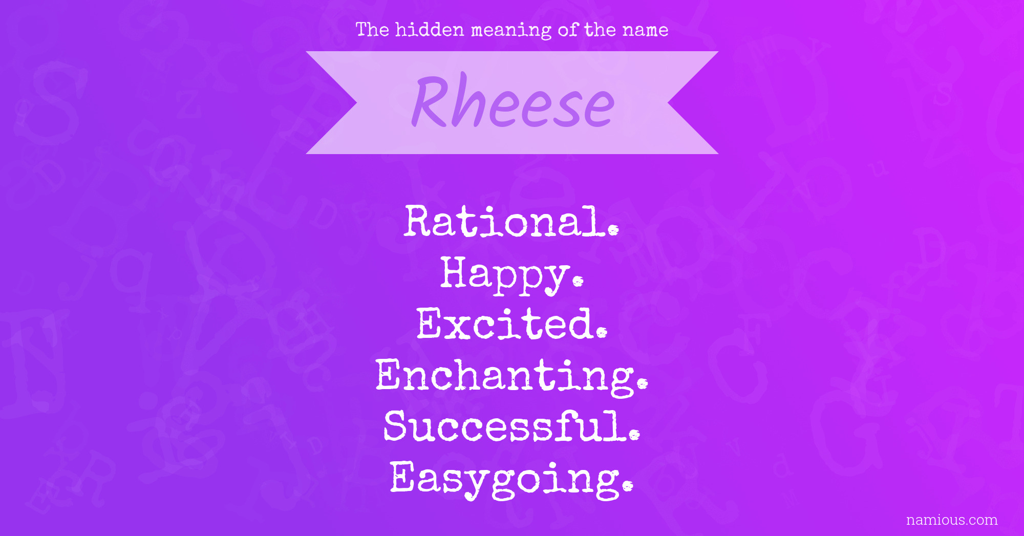 "Rheese is a rational, happy, excited, enchanting, successful and easygoing person."
