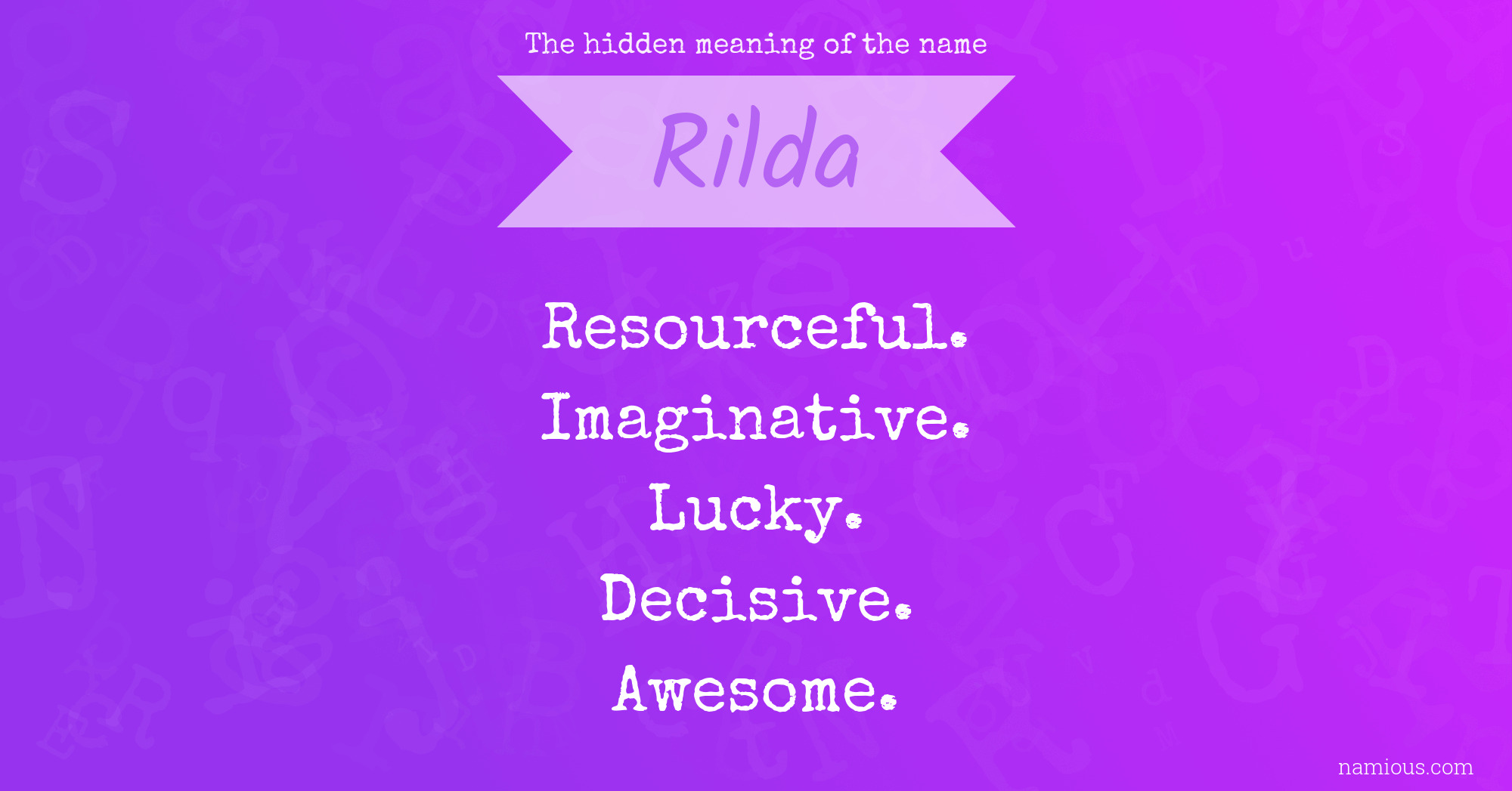 "Rilda is a resourceful, imaginative, lucky, decisive and awesome person."