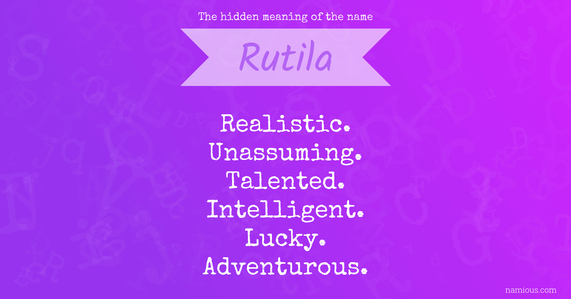 "Rutila is a realistic, unassuming, talented, intelligent, lucky and adventurous person."