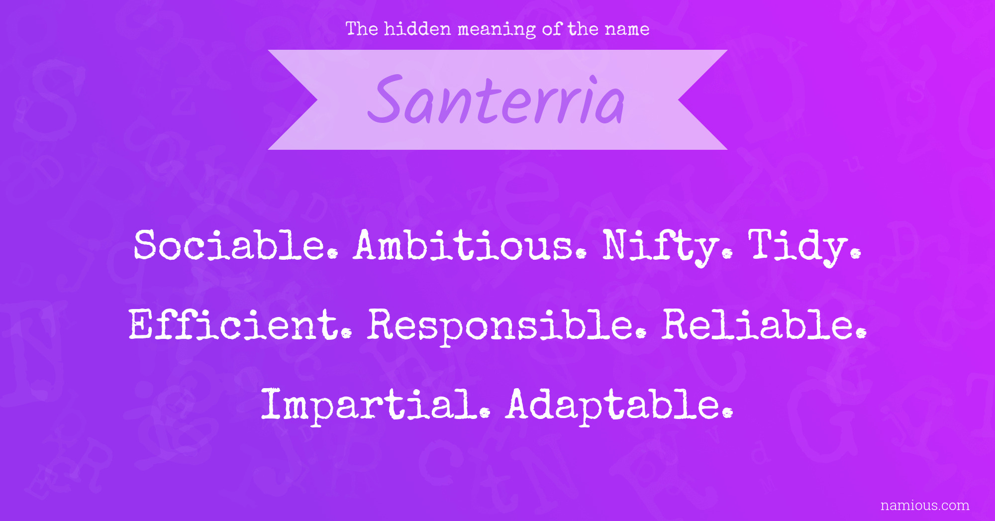 "Santerria is a sociable, ambitious, nifty, tidy, efficient, responsible, reliable, impartial and adaptable person."