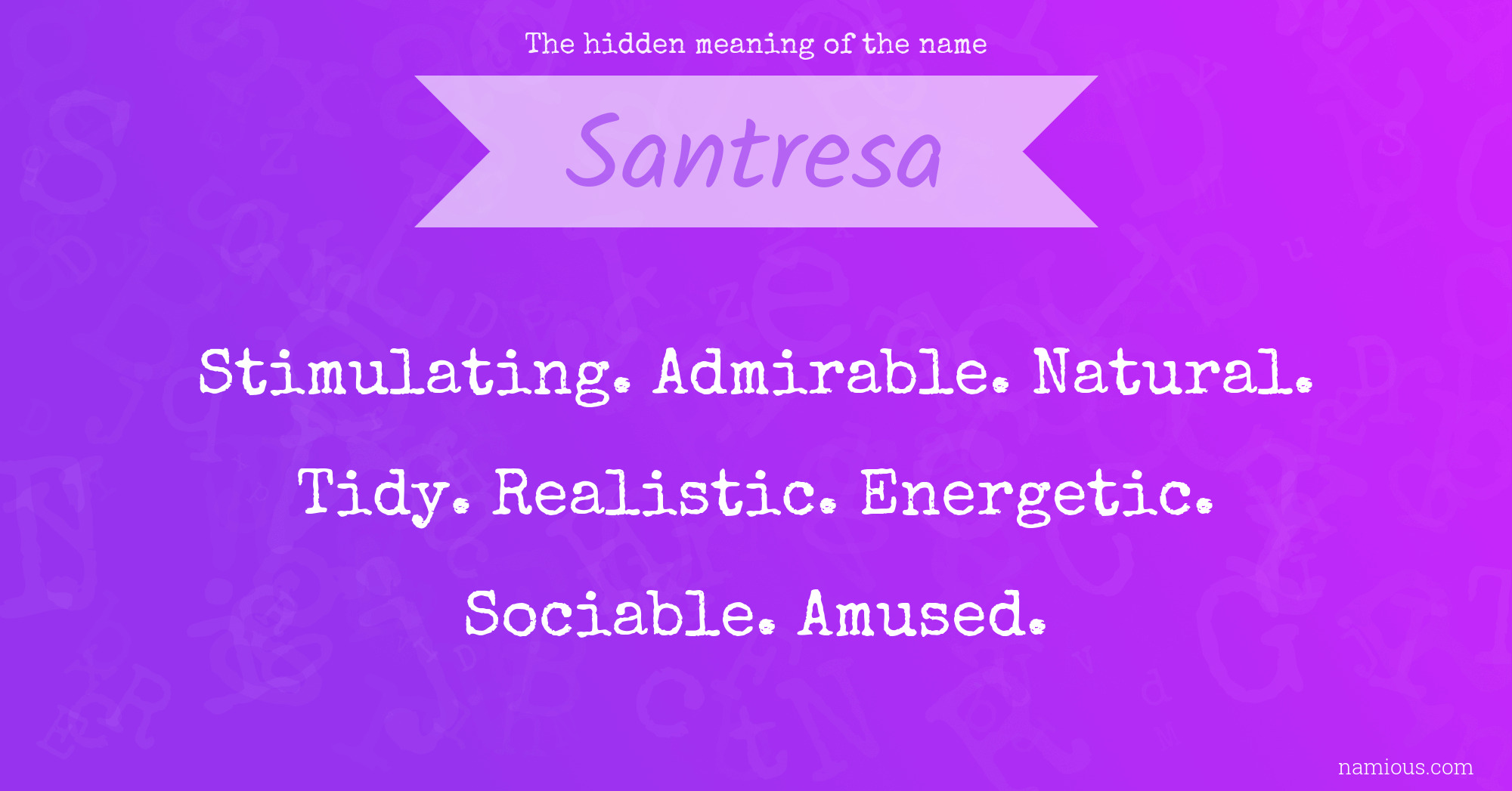 "Santresa is a stimulating, admirable, natural, tidy, realistic, energetic, sociable and amused person."