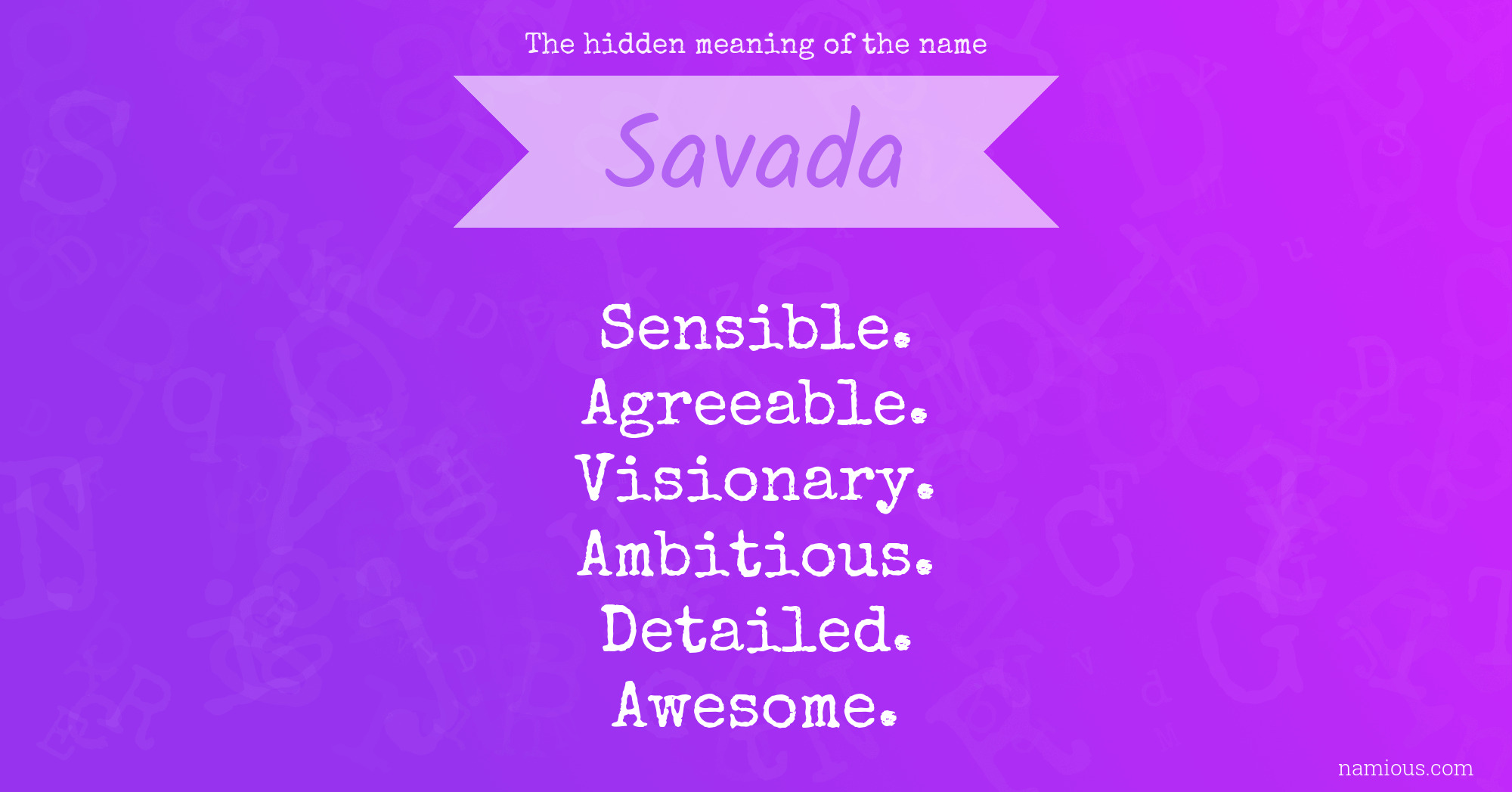"Savada is a sensible, agreeable, visionary, ambitious, detailed and awesome person."