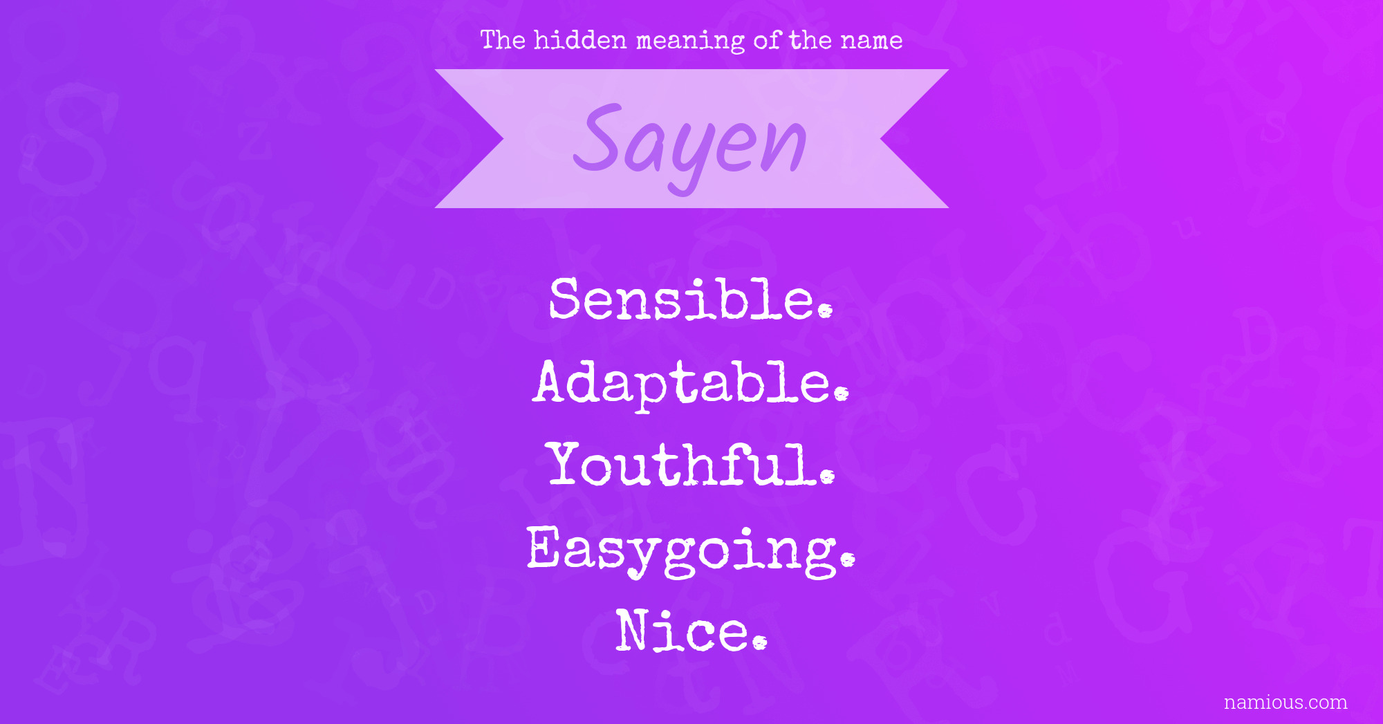 "Sayen is a sensible, adaptable, youthful, easygoing and nice person."