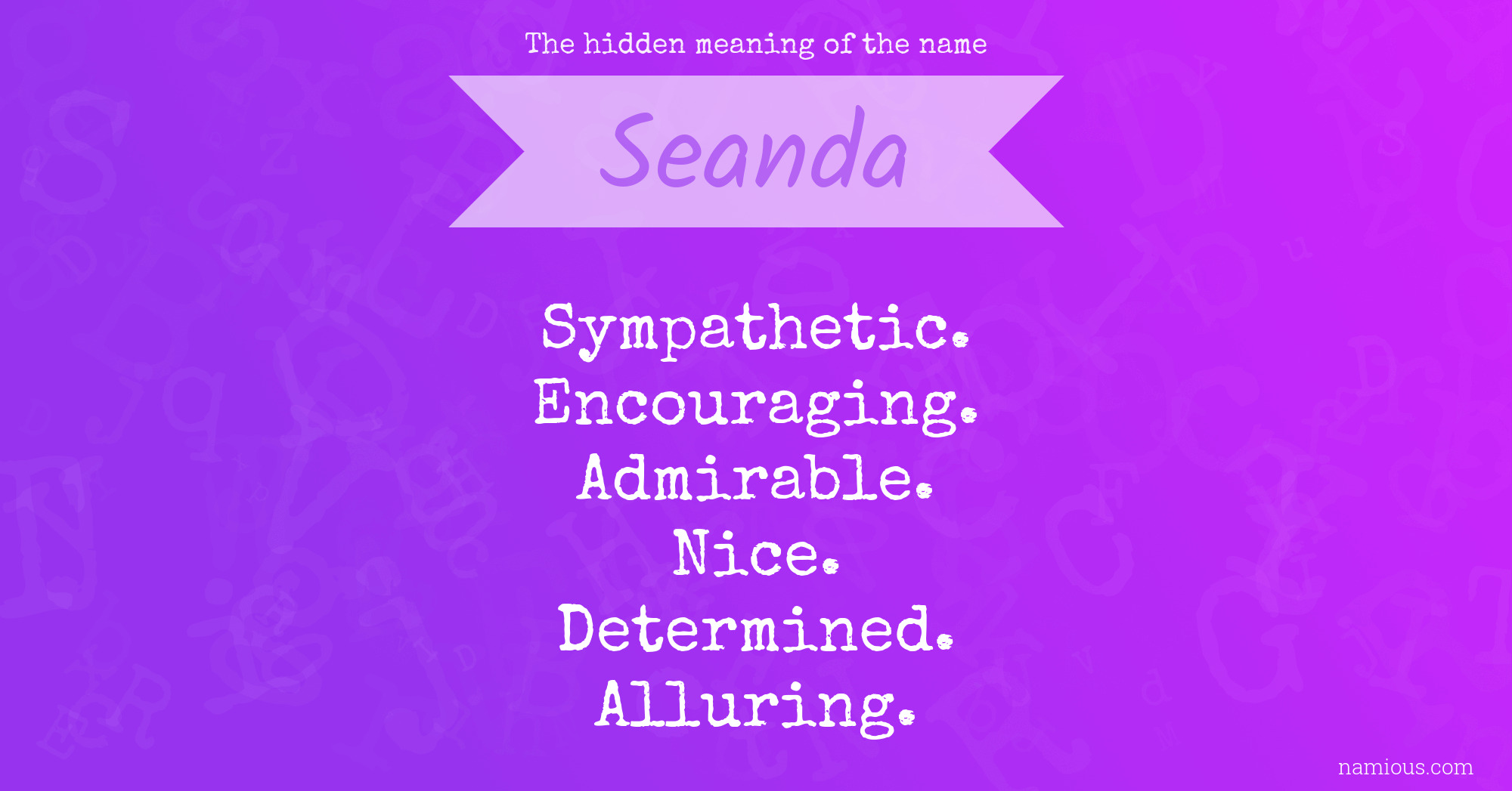 "Seanda is a sympathetic, encouraging, admirable, nice, determined and alluring person."