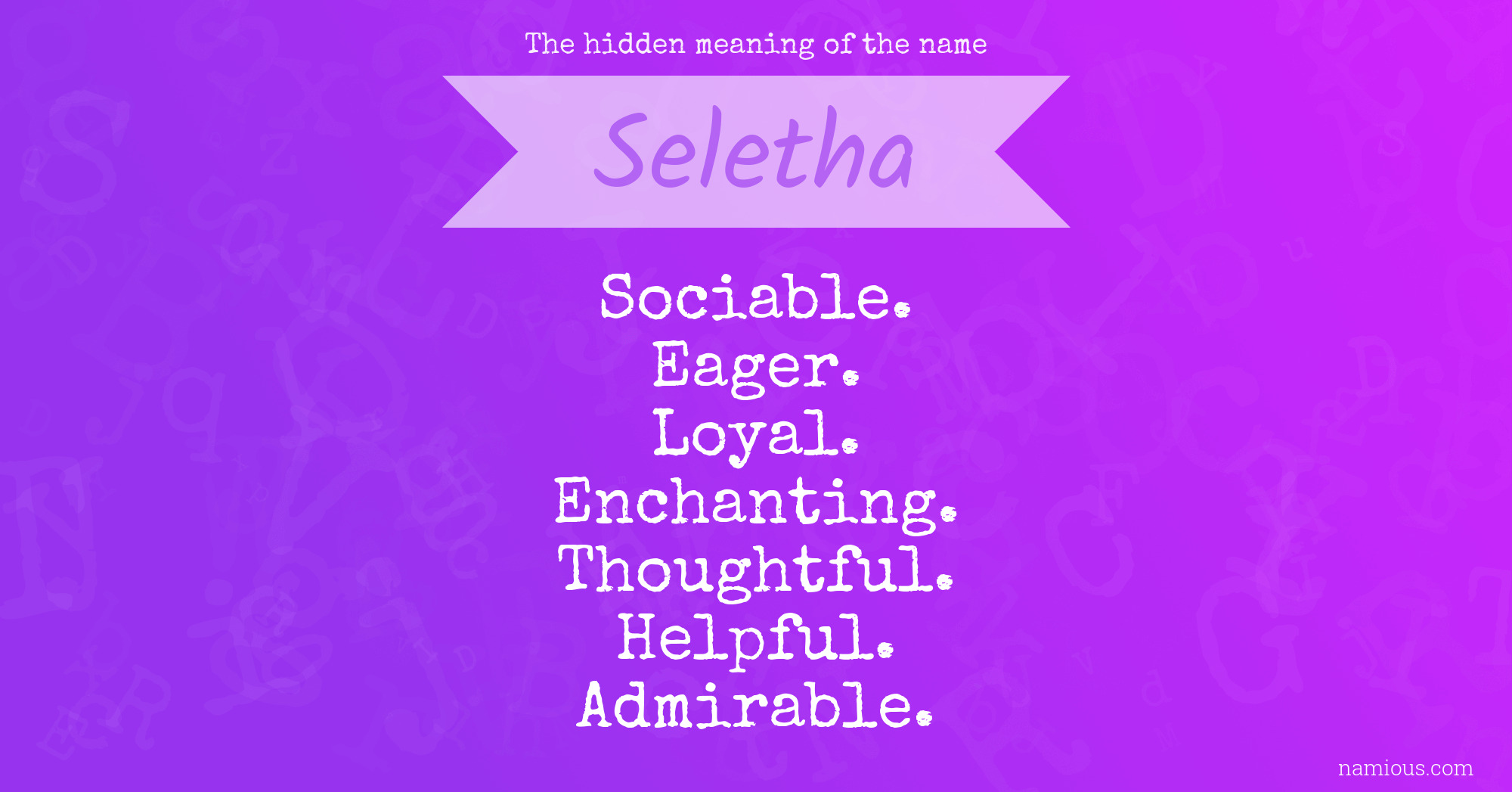 "Seletha is a sociable, eager, loyal, enchanting, thoughtful, helpful and admirable person."
