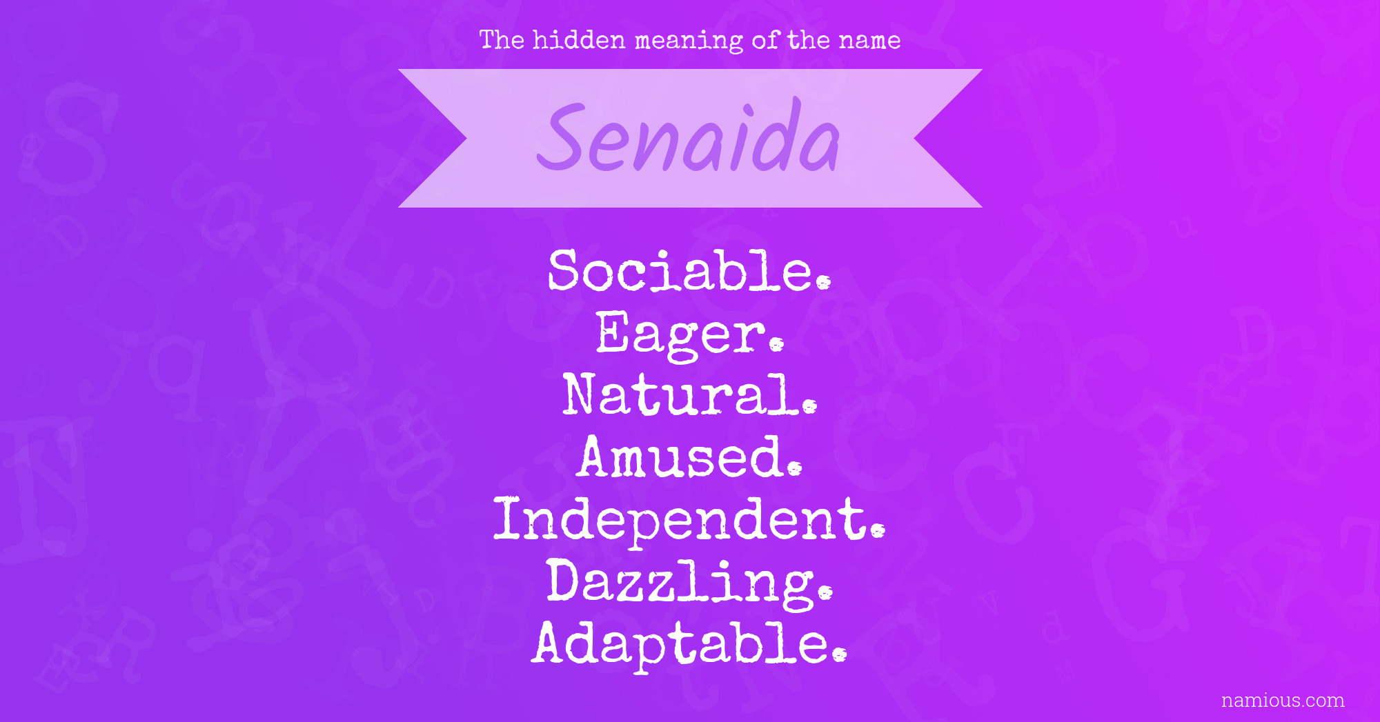 "Senaida is a sociable, eager, natural, amused, independent, dazzling and adaptable person."
