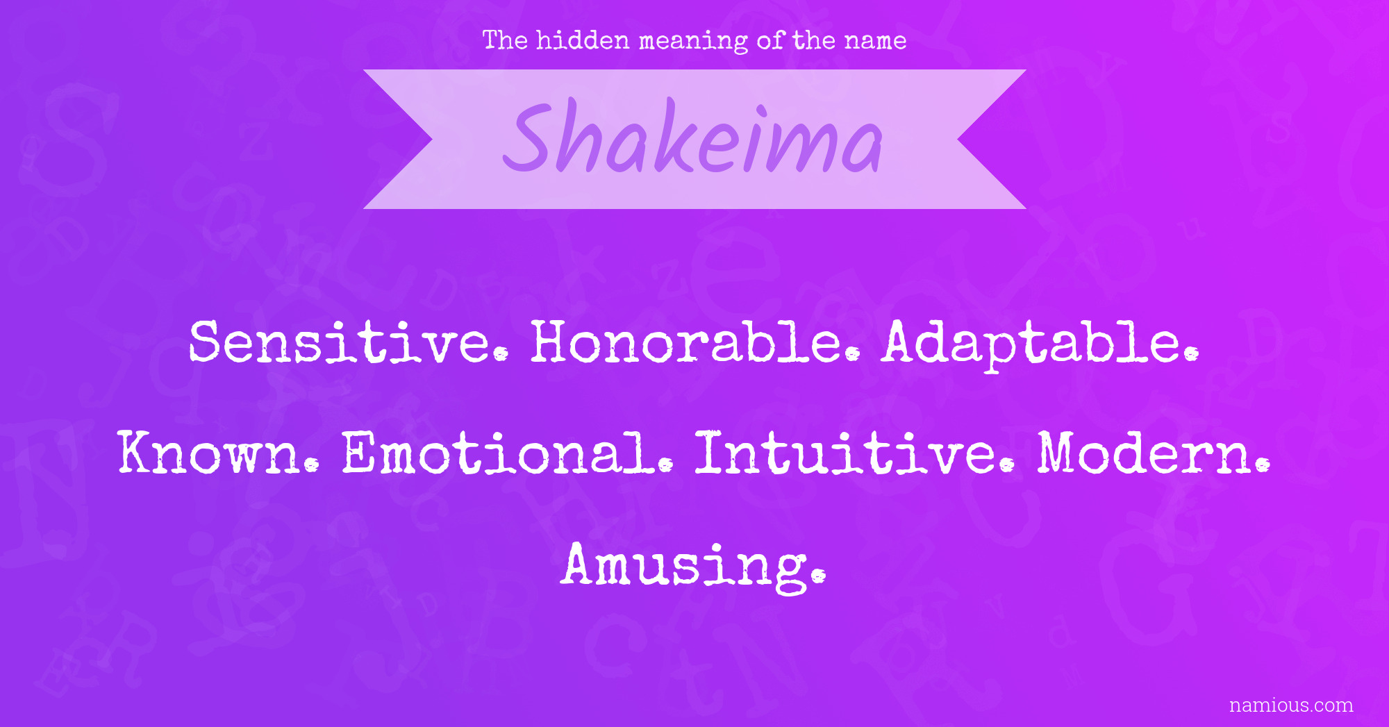 "Shakeima is a sensitive, honorable, adaptable, known, emotional, intuitive, modern and amusing person."