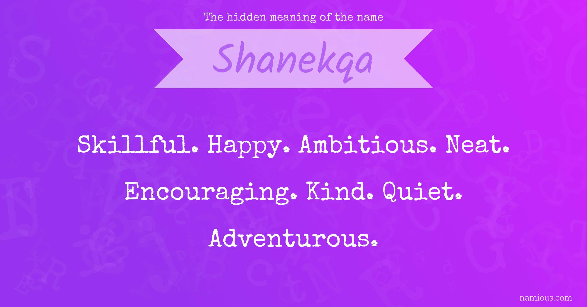 "Shanekqa is a skillful, happy, ambitious, neat, encouraging, kind, quiet and adventurous person."