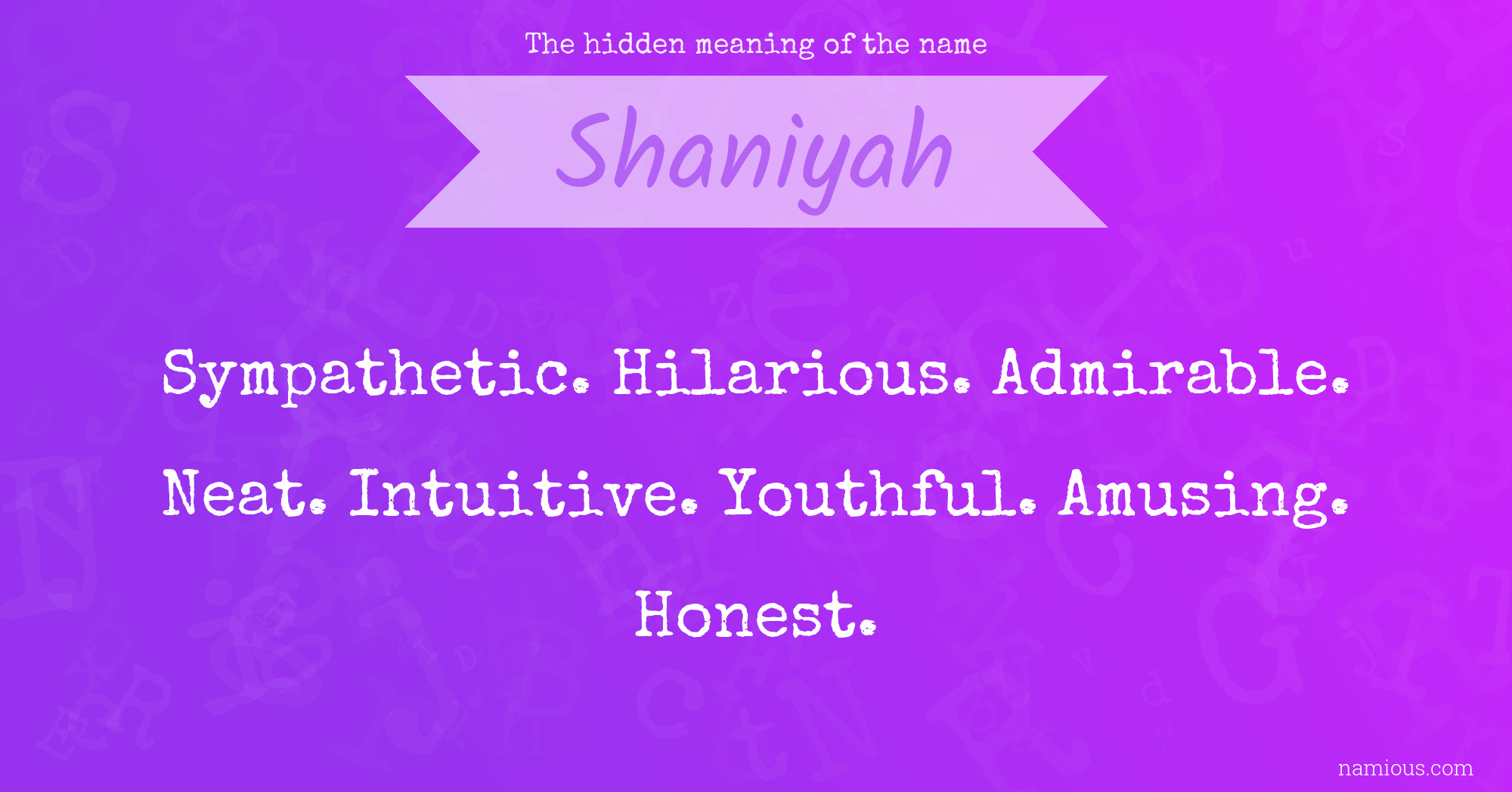 "Shaniyah is a sympathetic, hilarious, admirable, neat, intuitive, youthful, amusing and honest person."