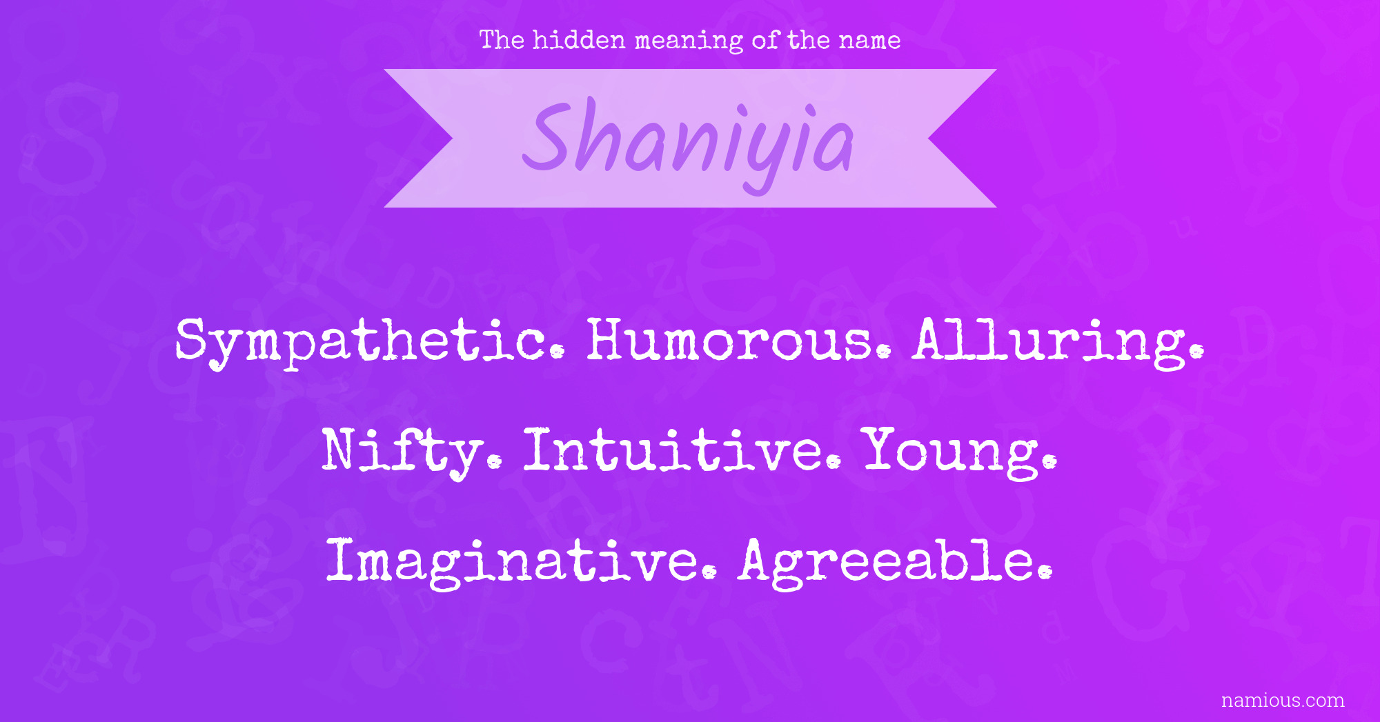 "Shaniyia is a sympathetic, humorous, alluring, nifty, intuitive, young, imaginative and agreeable person."