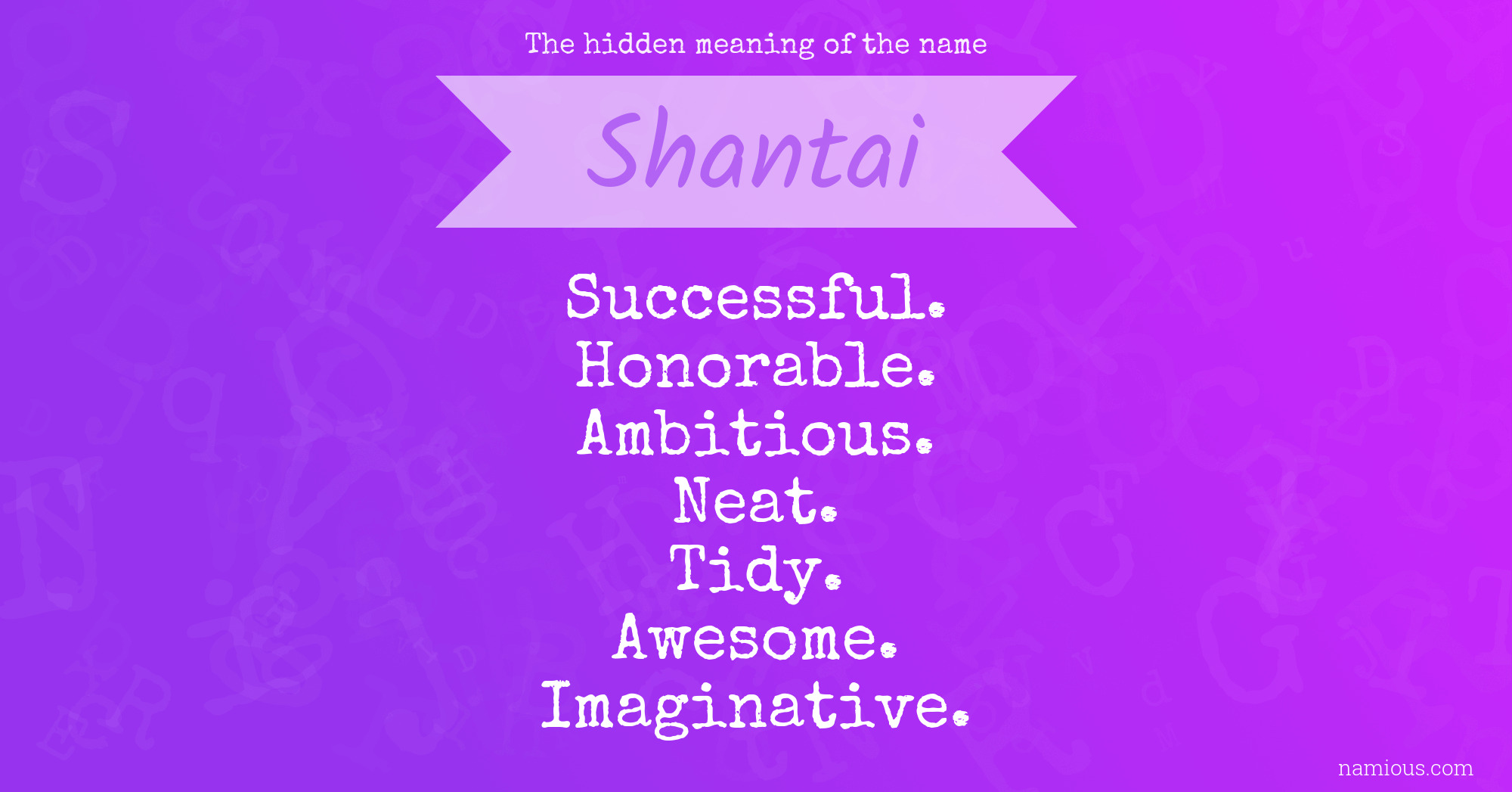 "Shantai is a successful, honorable, ambitious, neat, tidy, awesome and imaginative person."