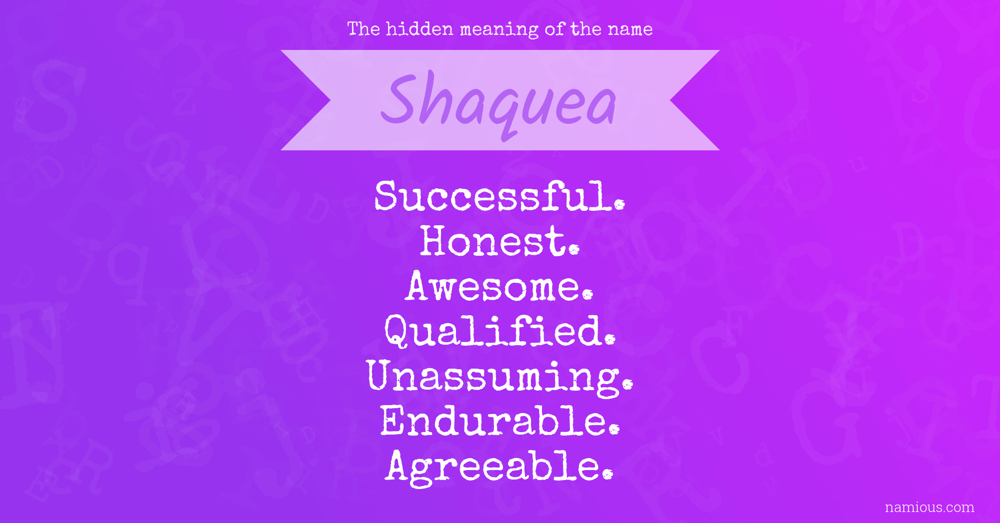 "Shaquea is a successful, honest, awesome, qualified, unassuming, endurable and agreeable person."