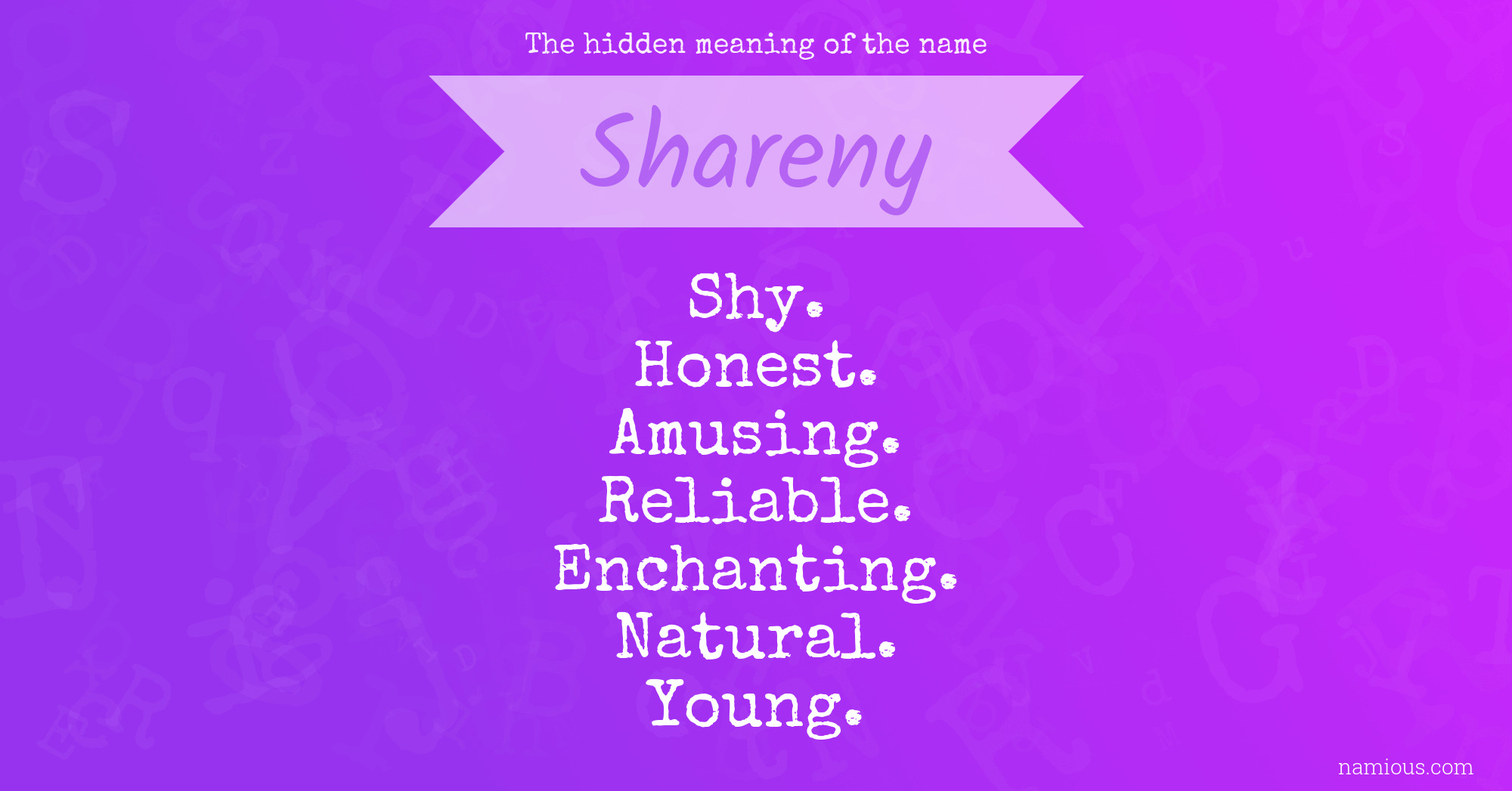 "Shareny is a shy, honest, amusing, reliable, enchanting, natural and young person."