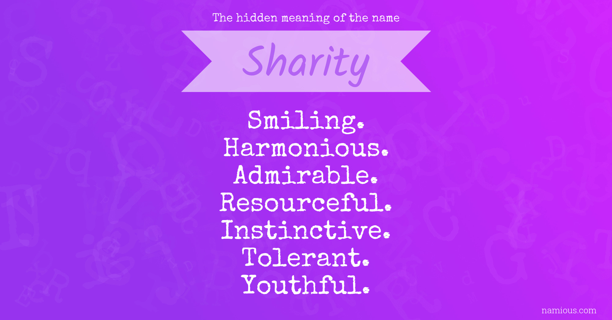 "Sharity is a smiling, harmonious, admirable, resourceful, instinctive, tolerant and youthful person."
