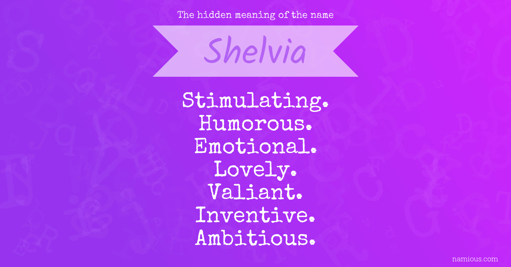 "Shelvia is a stimulating, humorous, emotional, lovely, valiant, inventive and ambitious person."