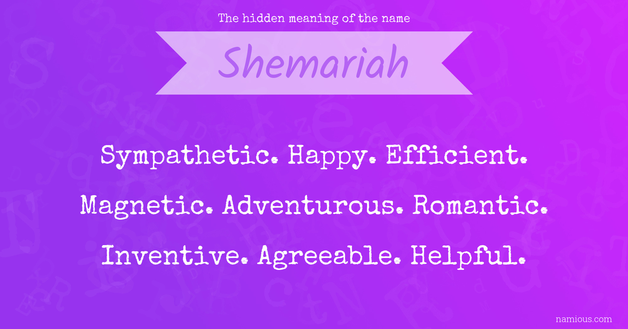 "Shemariah is a sympathetic, happy, efficient, magnetic, adventurous, romantic, inventive, agreeable and helpful person."