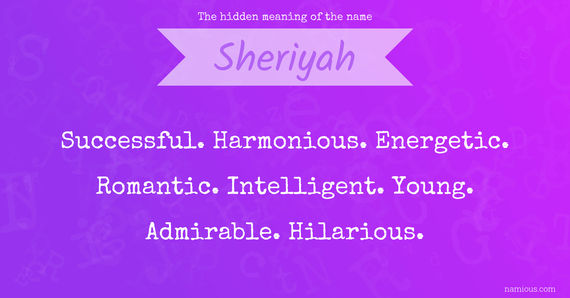 "Sheriyah is a successful, harmonious, energetic, romantic, intelligent, young, admirable and hilarious person."