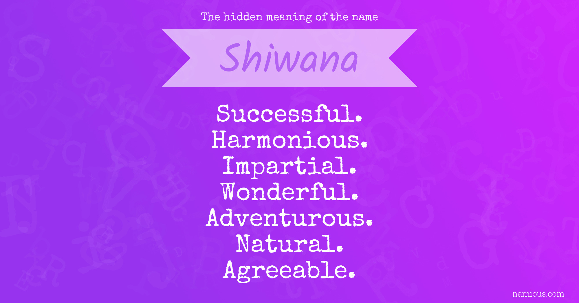 "Shiwana is a successful, harmonious, impartial, wonderful, adventurous, natural and agreeable person."