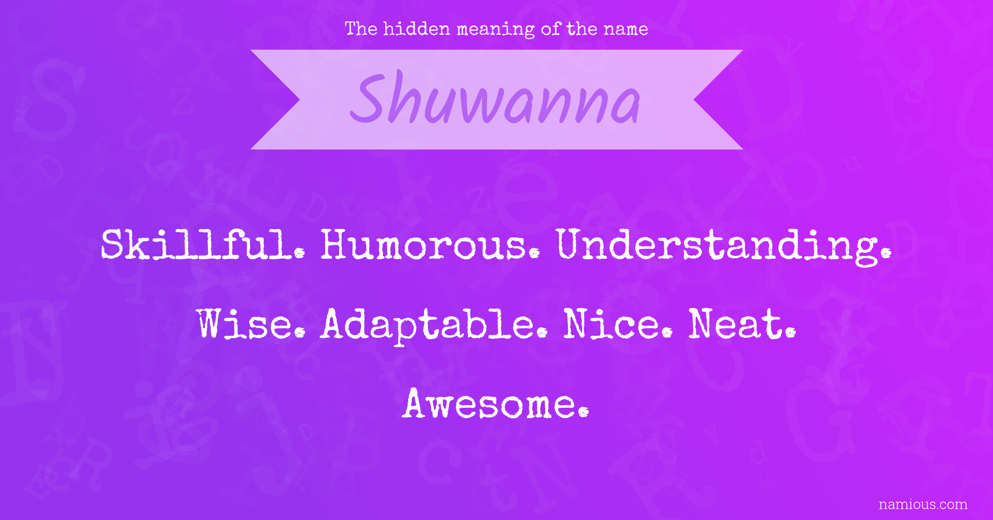"Shuwanna is a skillful, humorous, understanding, wise, adaptable, nice, neat and awesome person."