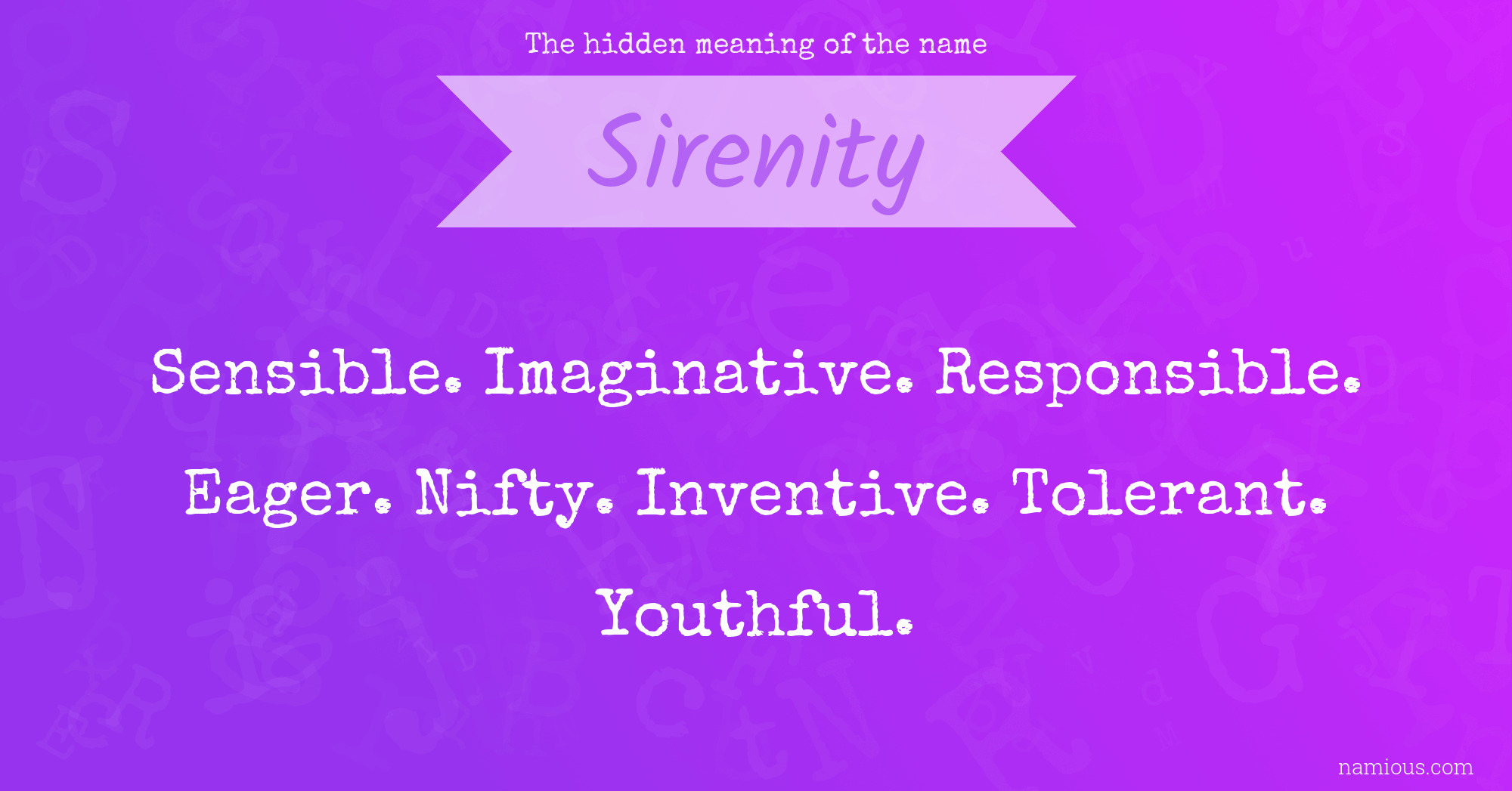 "Sirenity is a sensible, imaginative, responsible, eager, nifty, inventive, tolerant and youthful person."