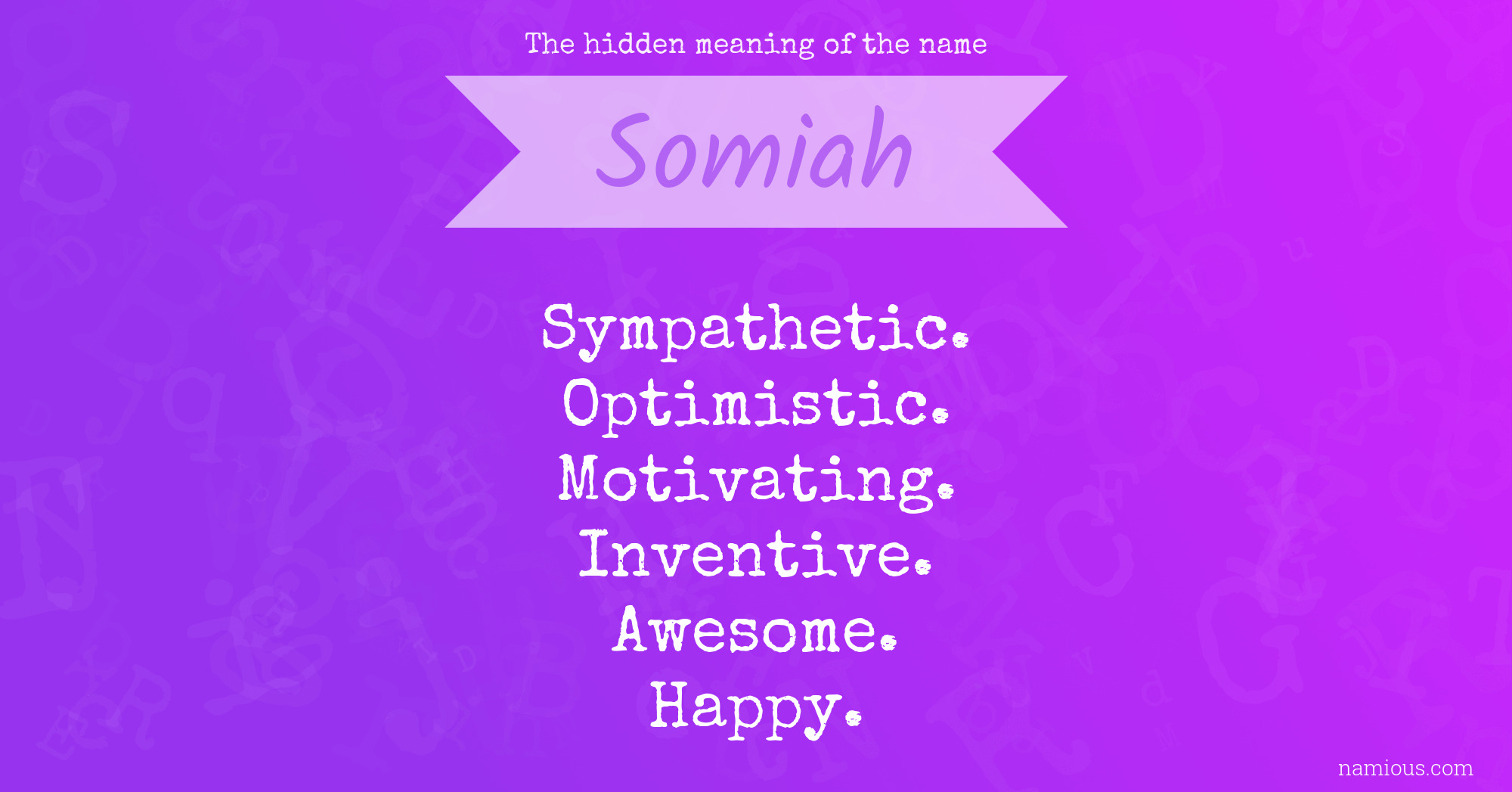 "Somiah is a sympathetic, optimistic, motivating, inventive, awesome and happy person."