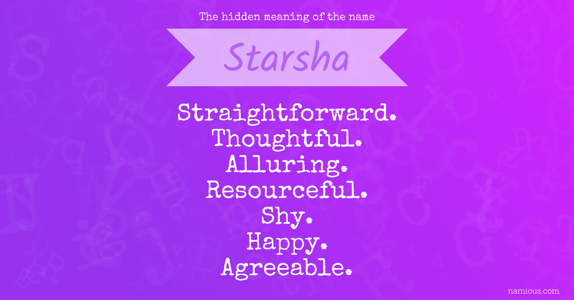 "Starsha is a straightforward, thoughtful, alluring, resourceful, shy, happy and agreeable person."