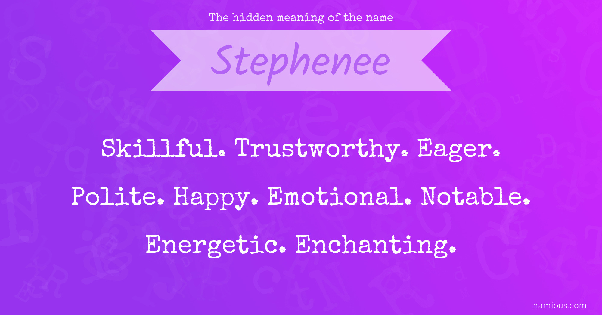 "Stephenee is a skillful, trustworthy, eager, polite, happy, emotional, notable, energetic and enchanting person."