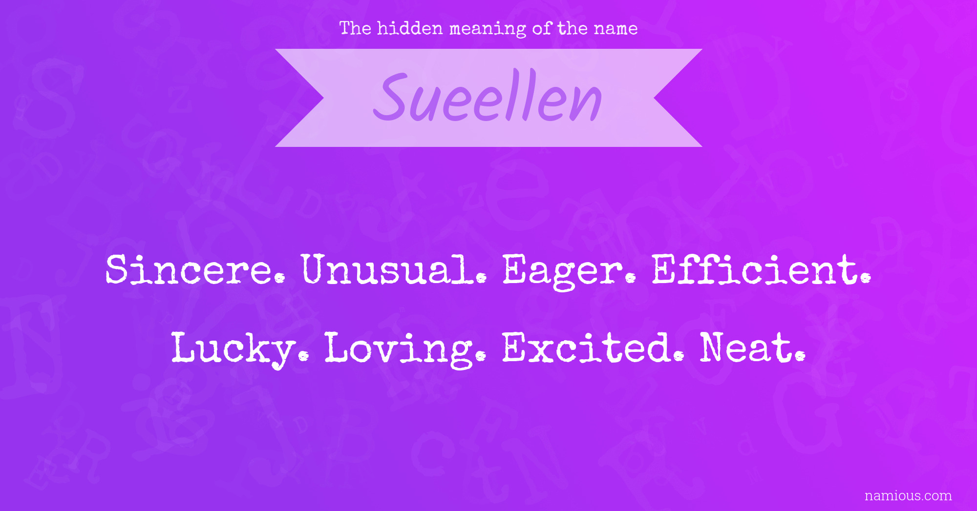"Sueellen is a sincere, unusual, eager, efficient, lucky, loving, excited and neat person."