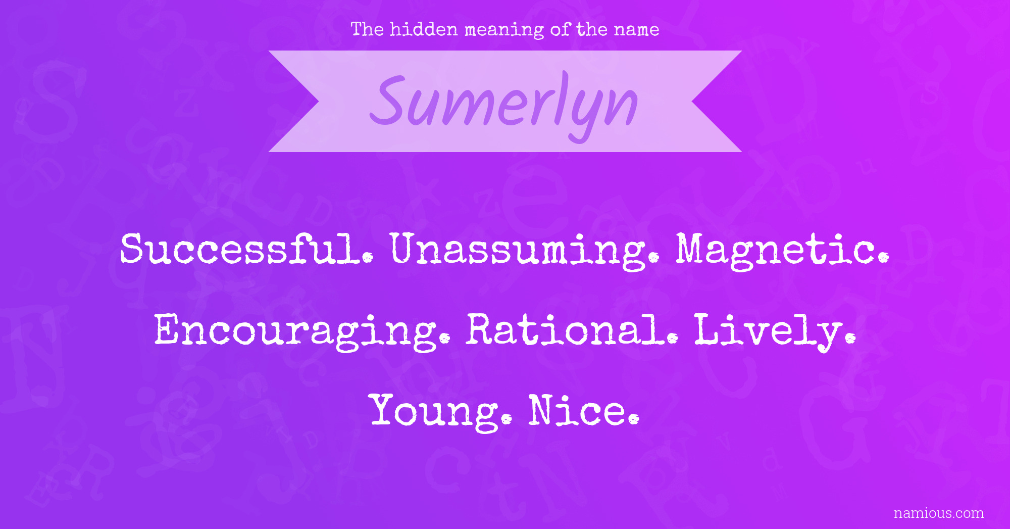 "Sumerlyn is a successful, unassuming, magnetic, encouraging, rational, lively, young and nice person."