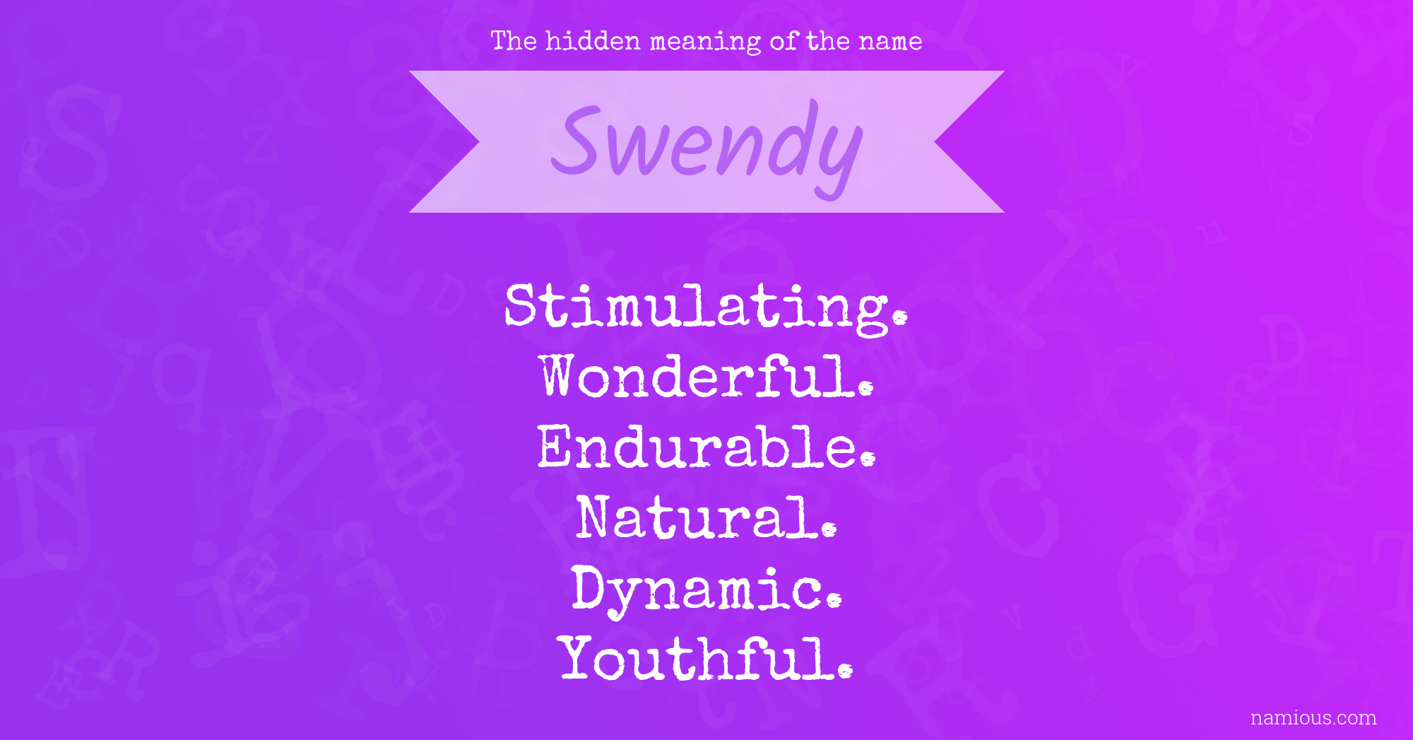 "Swendy is a stimulating, wonderful, endurable, natural, dynamic and youthful person."