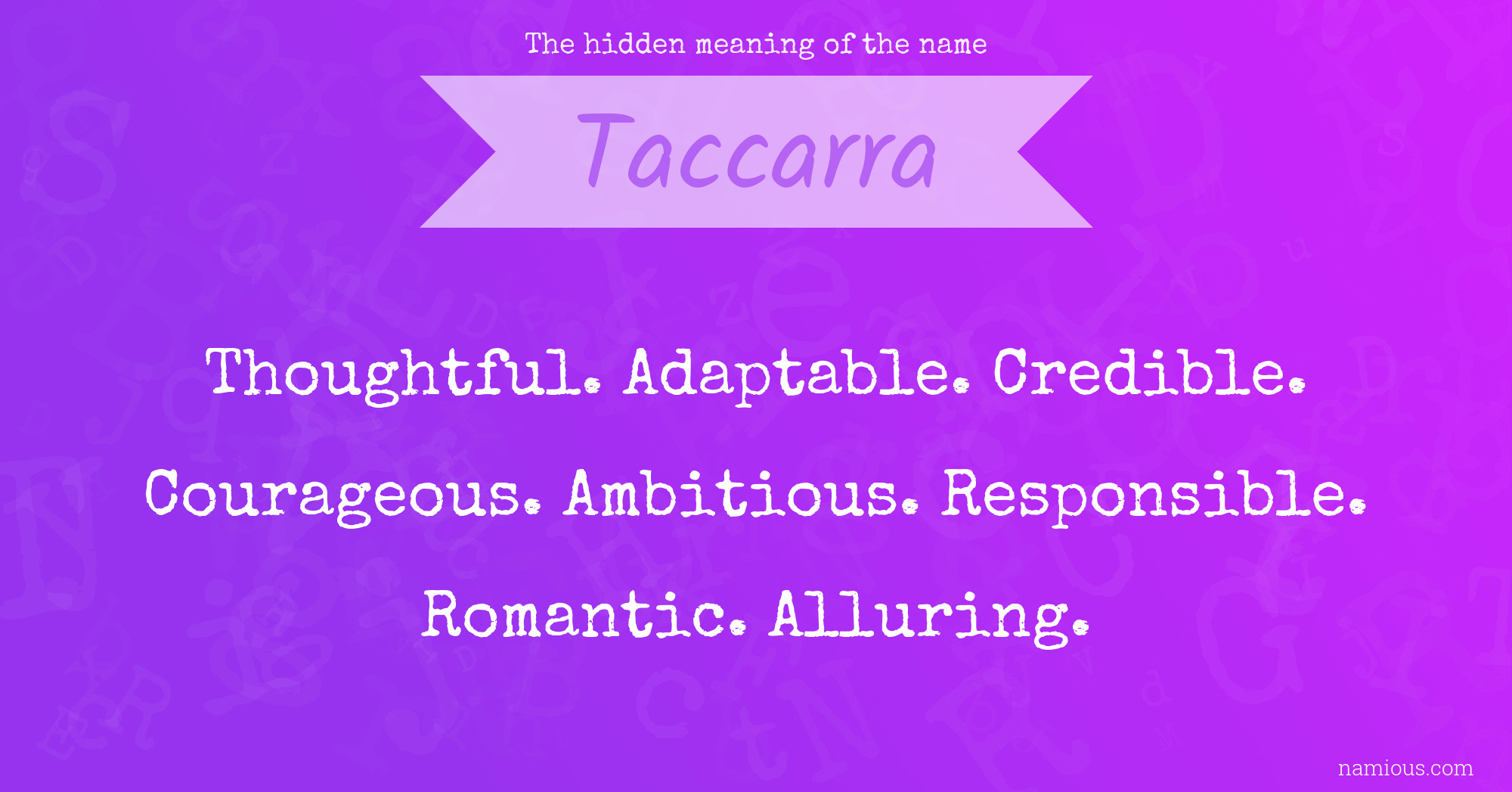 "Taccarra is a thoughtful, adaptable, credible, courageous, ambitious, responsible, romantic and alluring person."